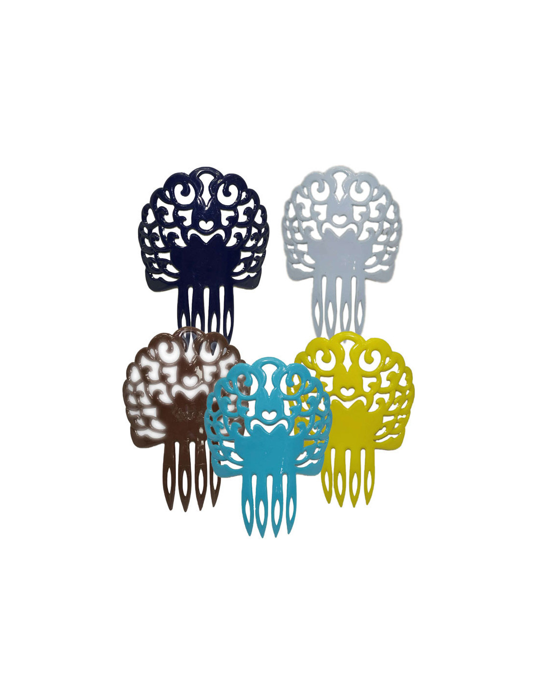 Contiene una peineta de plástico de 11x14cm aproximadamente.
