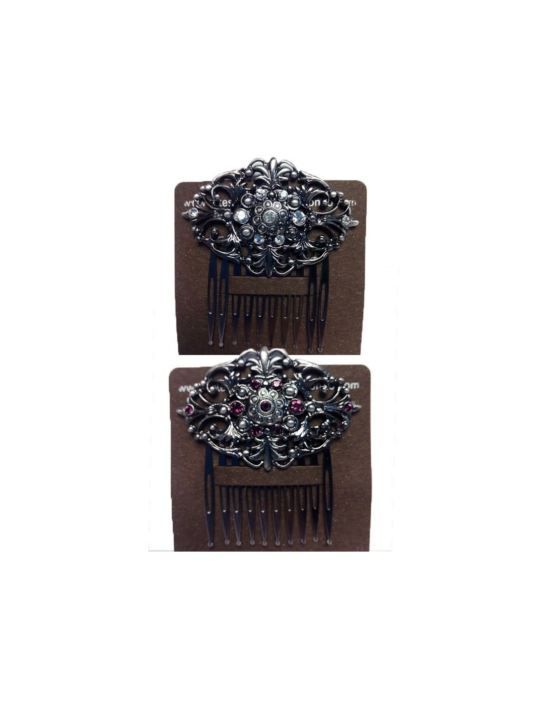 Peineta baturra en color plata con brillantes. Tiene unas medidas de 6,5x6cm.