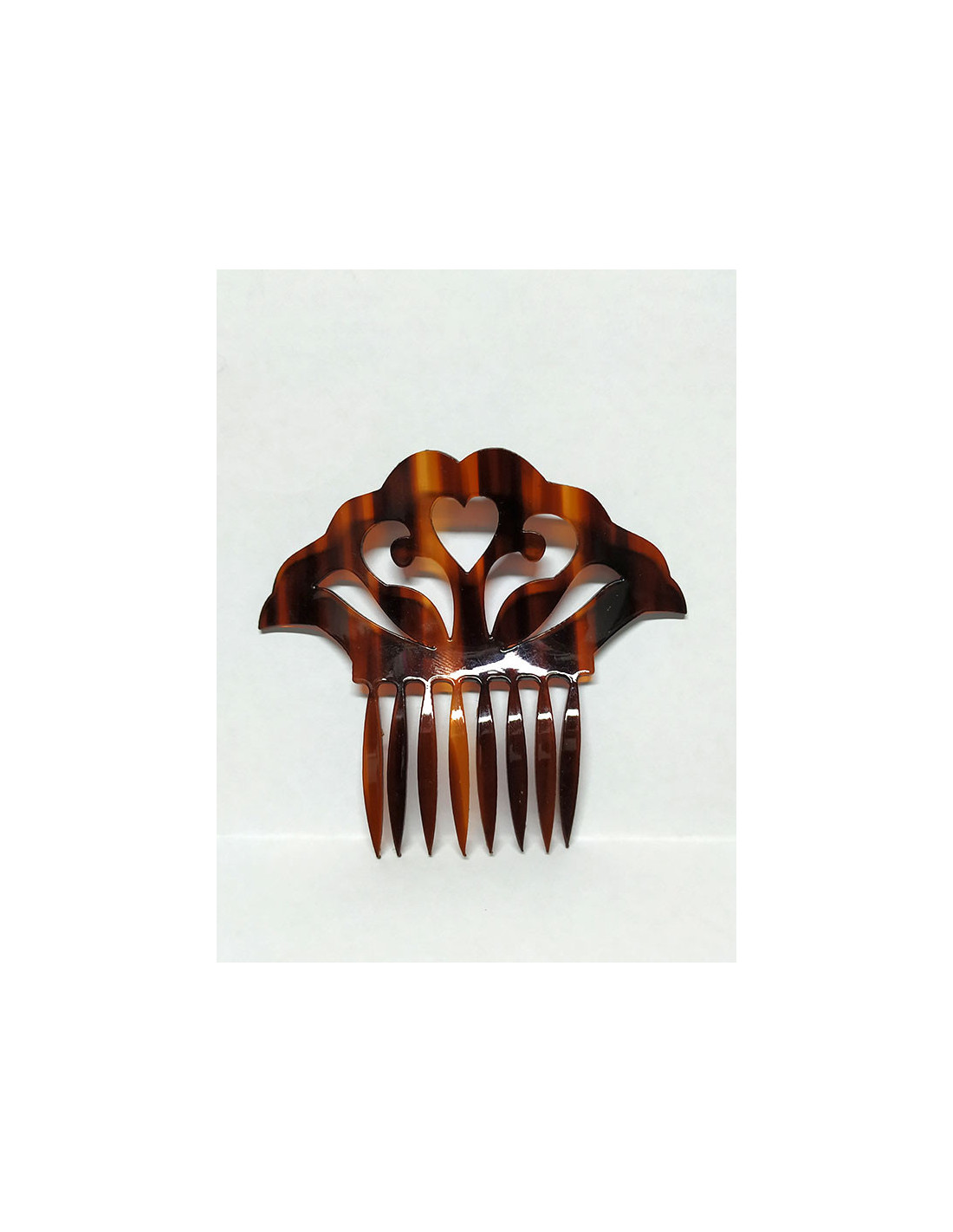 Esta peineta es de plástico en color carey. Tiene un tamaño de 65x70mm.