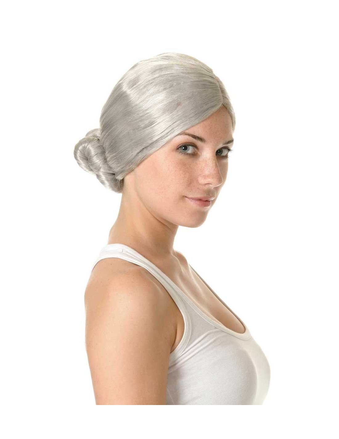 ¡Échate años encima! Con esta peluca de abuelita con raya en el centro y moño detrás podrás convertirte en una ancianita moderna. Atrapa al pájaro más escurridizo de los dibujos animados con la peluca de abuelita piolín, o simplemente diviértete siendo la abuela más cañera de la fiesta.