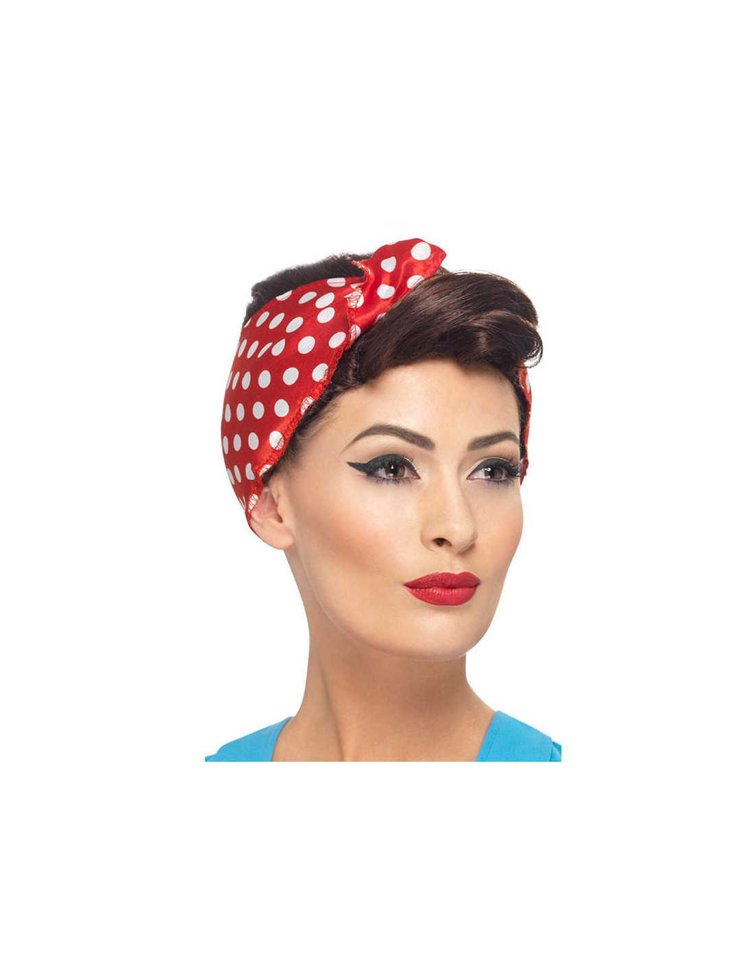 Peluca de los Años 40 con pañuelo para convertirte en el famoso icono femenino de las trabajadoras.