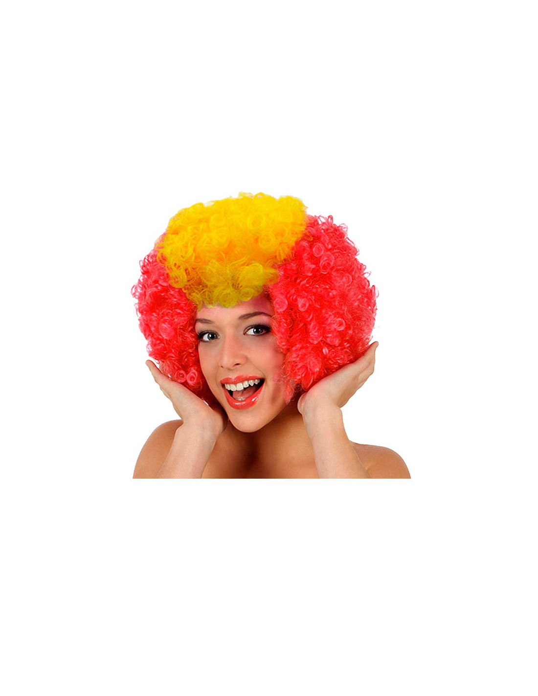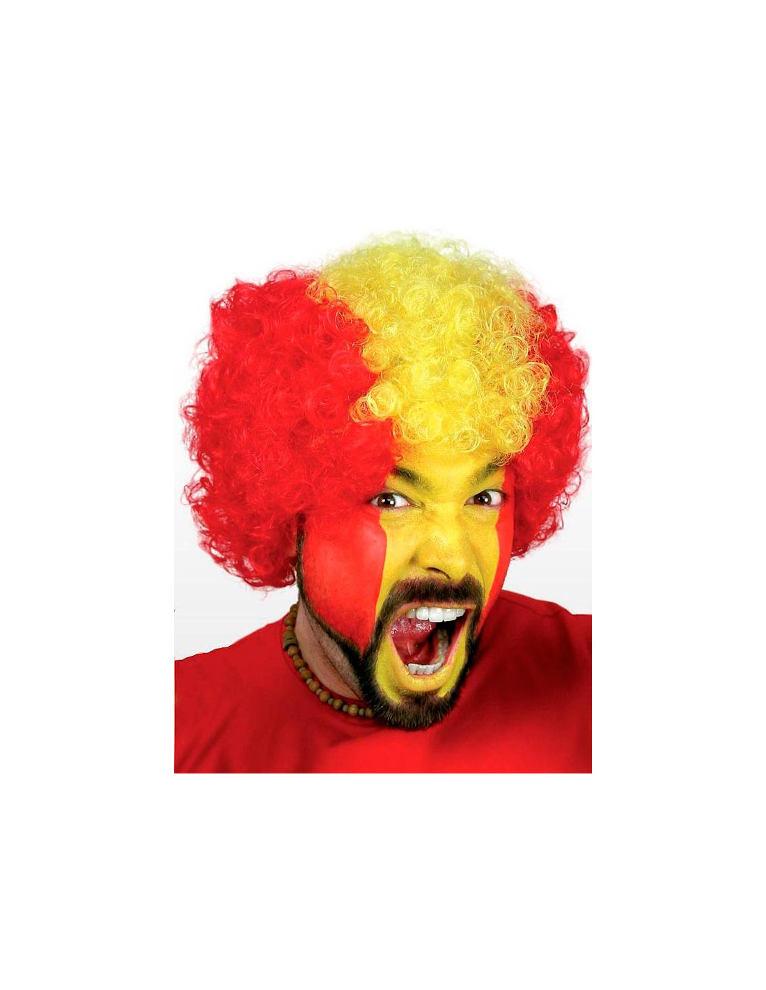 Peluca de España rizada para acudir a animar a la selección este mundial 2018 de fútbol celebrado en Rusia. Como si de una peluca de payaso con rizos se tratase, lleva los colores rojo y amarillo estampados sobre el mismo pelo. Tamaño para adultos y niños.