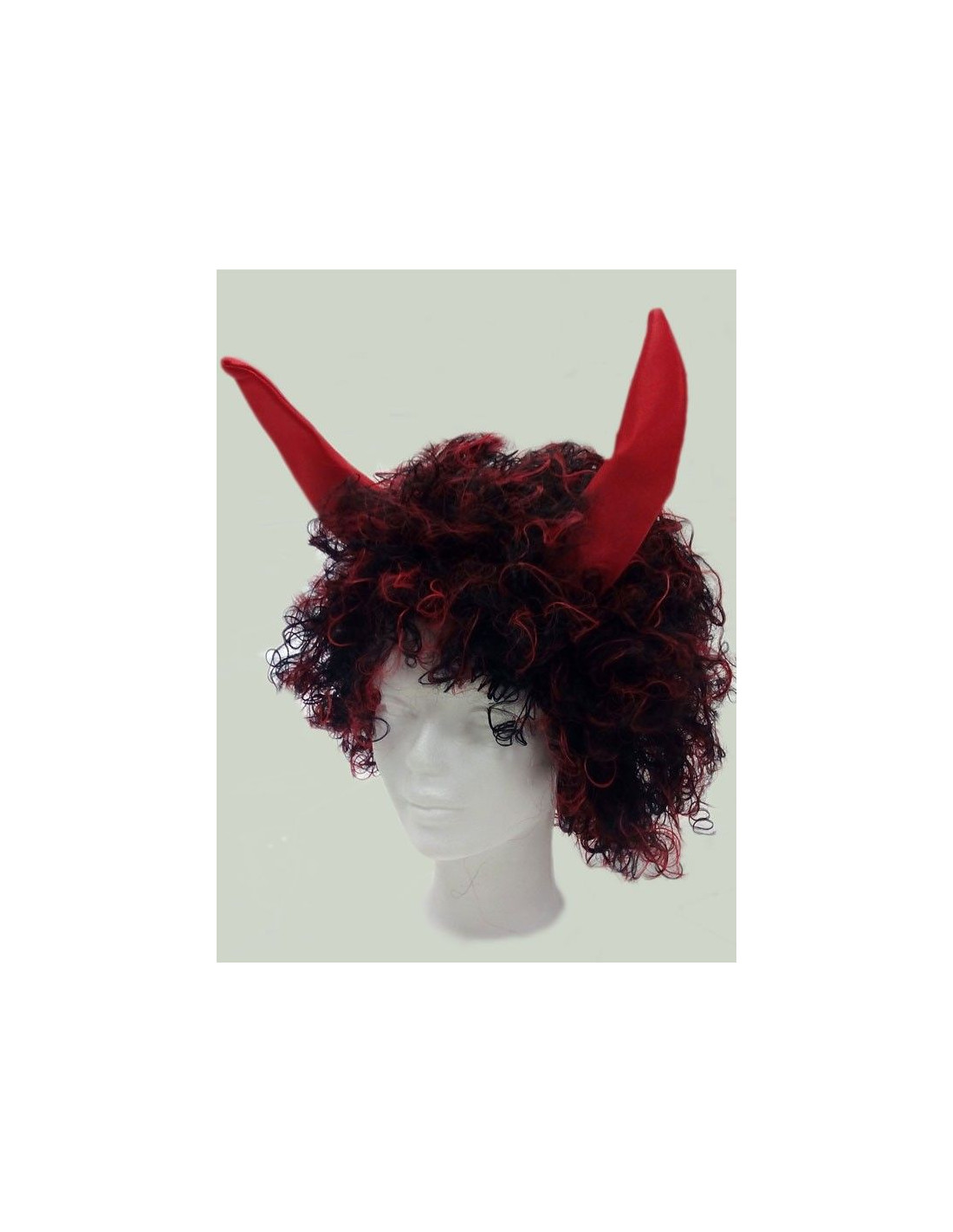 Peluca Barbarella de rizo para tu disfraz de demonio. Los cuernos vienen en colores surtidos: rojo, color carne o dorado.