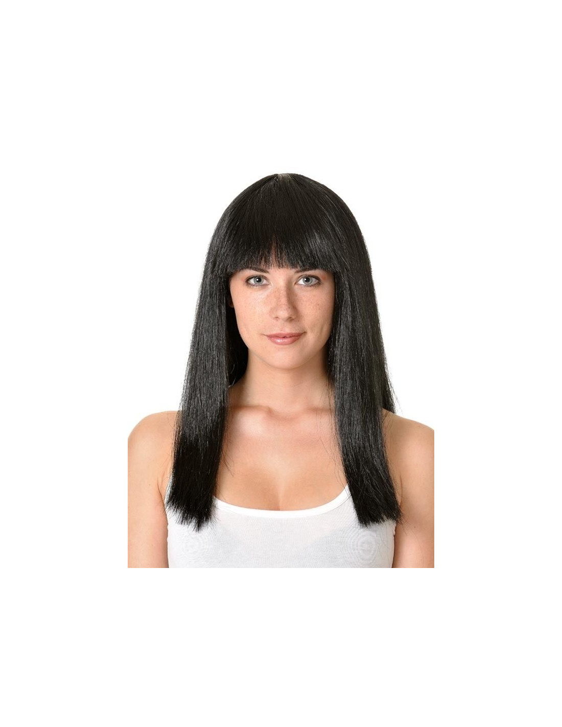 Peluca de Cleopatra con flequillo y melena larga hasta los hombros.