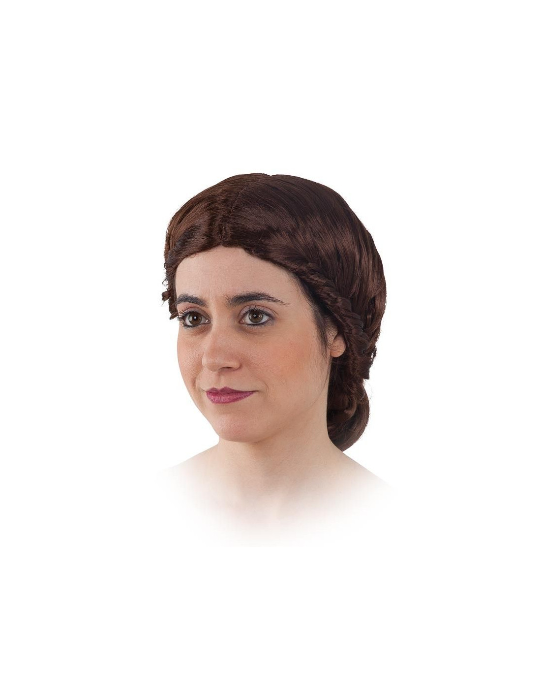 Peluca época medieval para caracterizarte junto a tu disfraz. Incluye peluca con moño y trenzas a los lados.