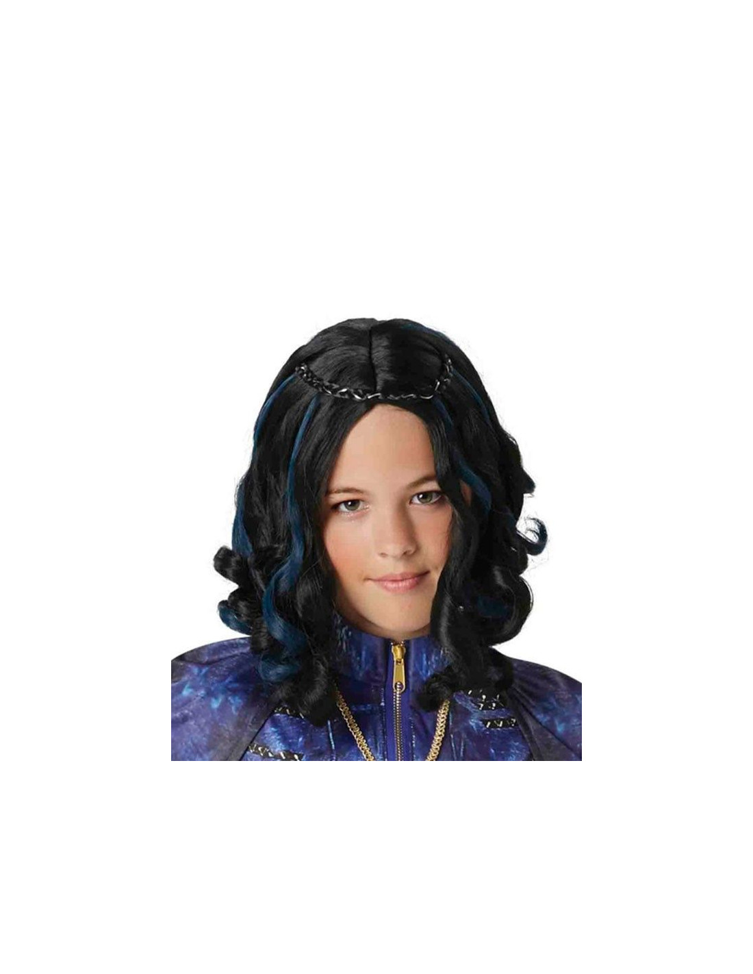 Peluca Evie Los Descendientes para niña con la que se convertirá en uno de los protagonistas de la película "Descendants". Con la particular habilidad de confeccionar su propia ropa así de comunicarse con el espejo mágico en busca de una guía para saber qué hacer, Evie es hija de la Reina Malvada (hermanastra de Blancanieves). Incluye una peluca de Evie para niña, de color moreno con mechas azuldees al igual que luce dicho personaje en la película.