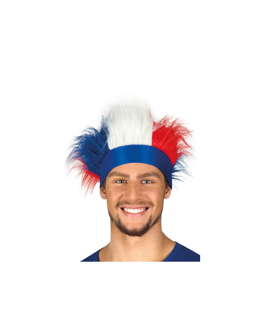 Anima a tu selección con esta peluca Francia con cinta para eventos deportivos o Fiestas temáticas. ¡Es el accesorio de hincha perfecto para animar!