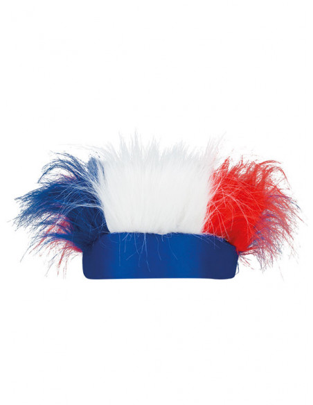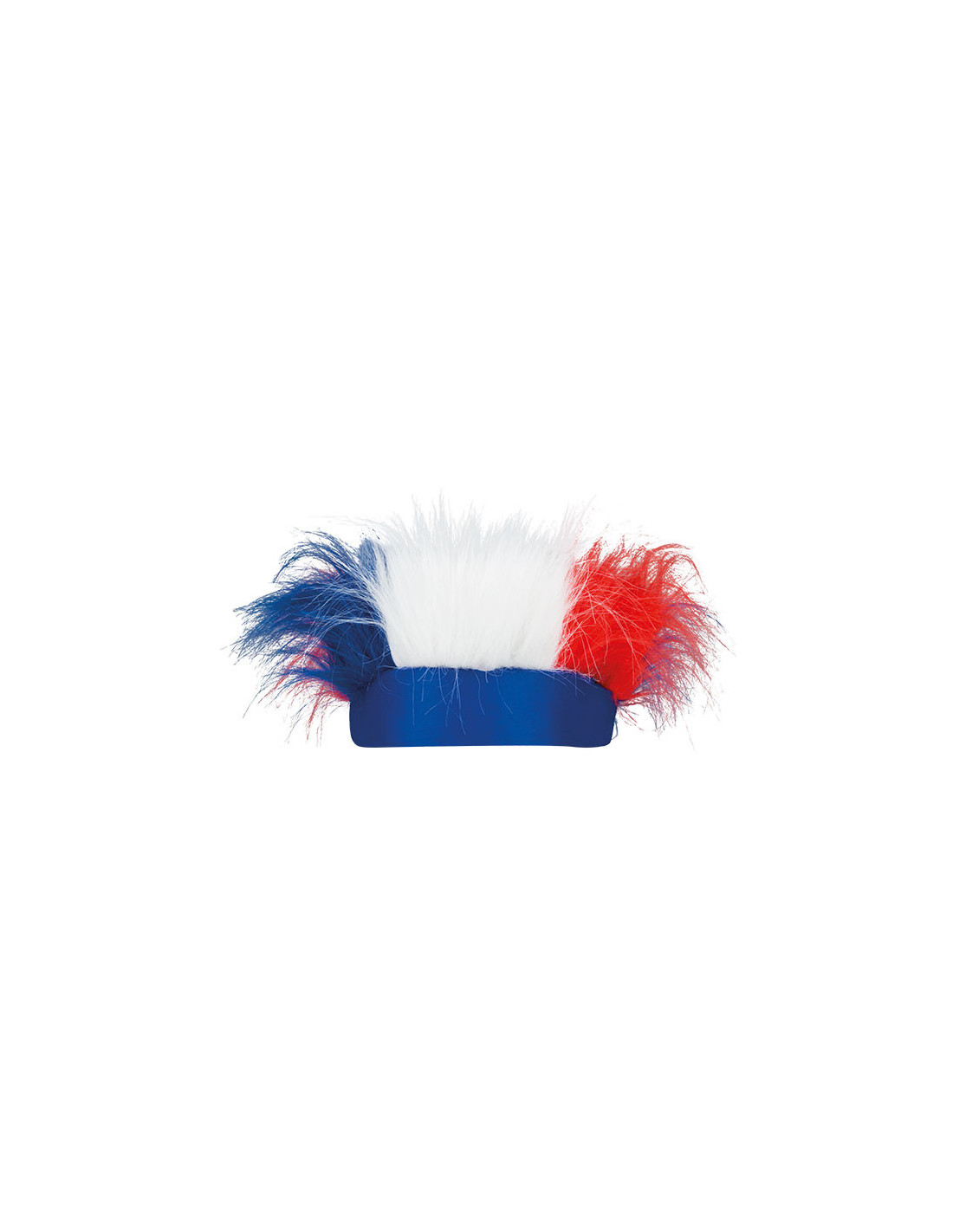 Este original accesorio consta de una diadema de hincha para adulto de color azul y pelo sintético tricolor, son los colores de la bandera francesa.