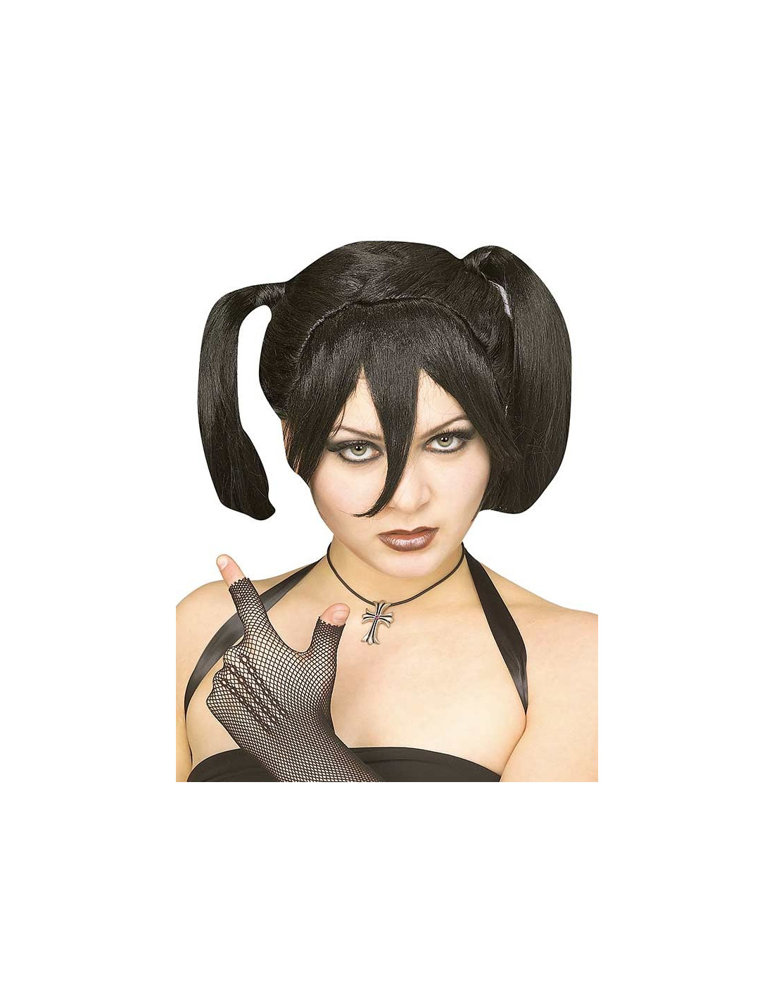 Peluca gótica con coletas que incluye una peluca negra con flequillo.