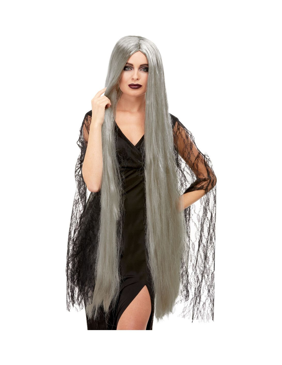 Peluca gris extra larga para tu disfraz de Halloween. Esta versatil peluca puede servirte para cualquier disfraz ambientado en Halloween como bruja, hechicera, novia cadaver, anciana zombie...