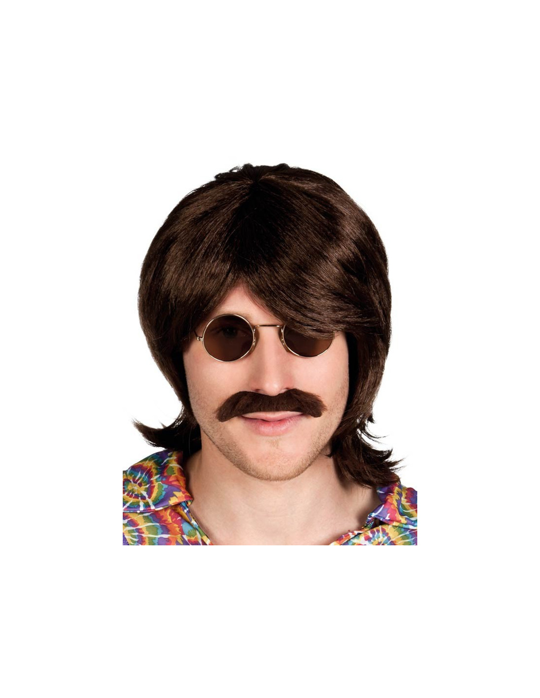 ¡Reparte paz y amor! Completa tu disfraz de los años 70 con esta peluca y bigote para hombre. Estarás irreconocible este Carnaval.