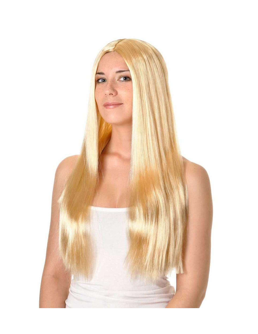 Peluca hippie de melena larga y lisa con raya en medio. Cambia tu estilo de pelo y caracterízate para tu disfraz con esta peluca disponible en múltiples colores.