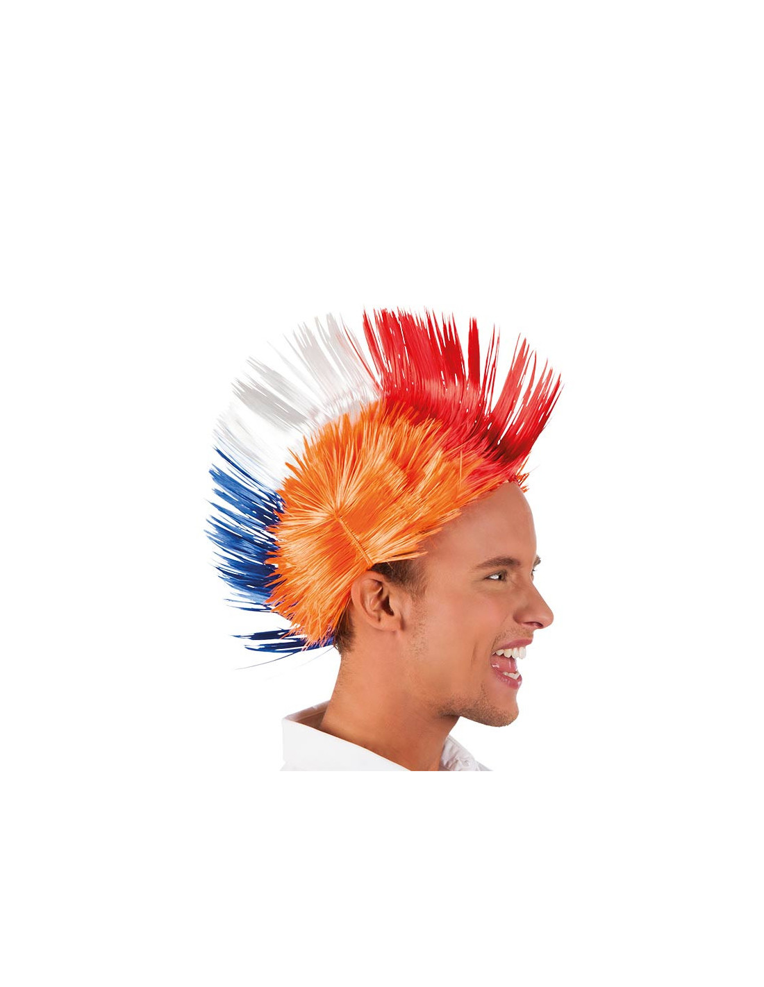 Peluca Holanda punk que incluye una peluca con cresta con los colores de Holanda.
