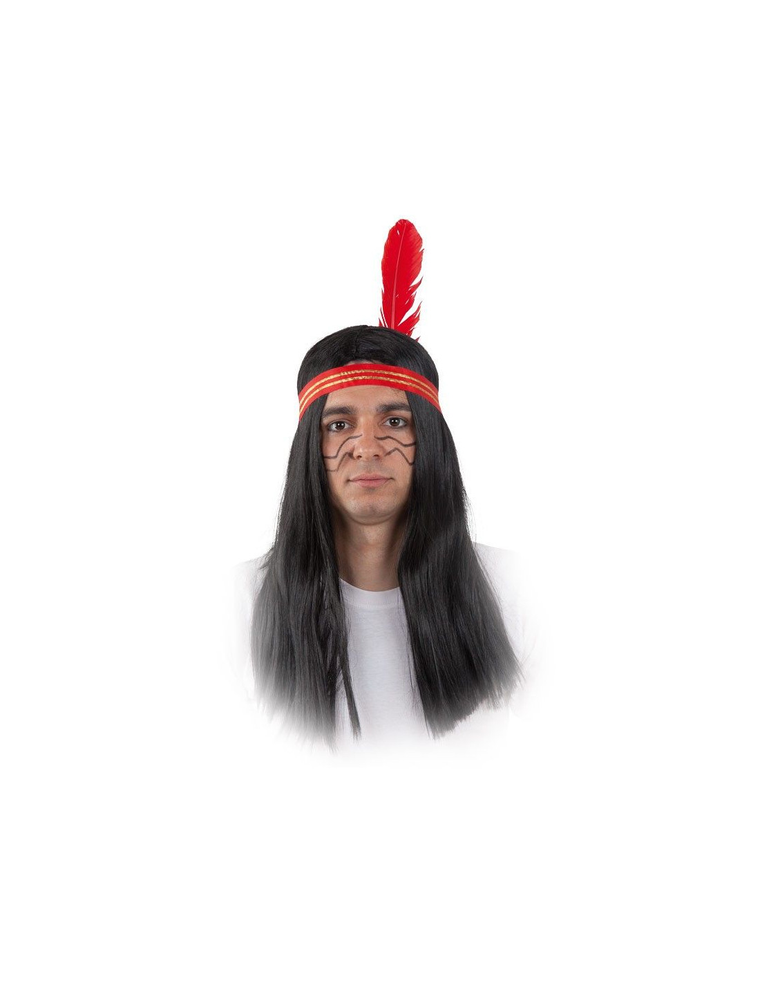 Peluca indio para caracterizarte con tu disfraz de apache. Incluye peluca de color negro,pelo largo, penacho y pluma.