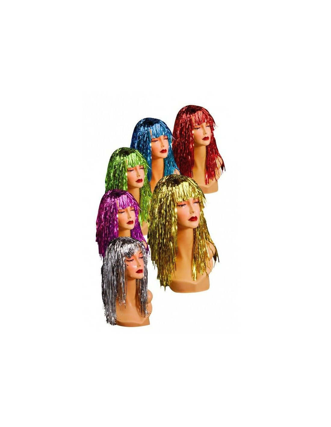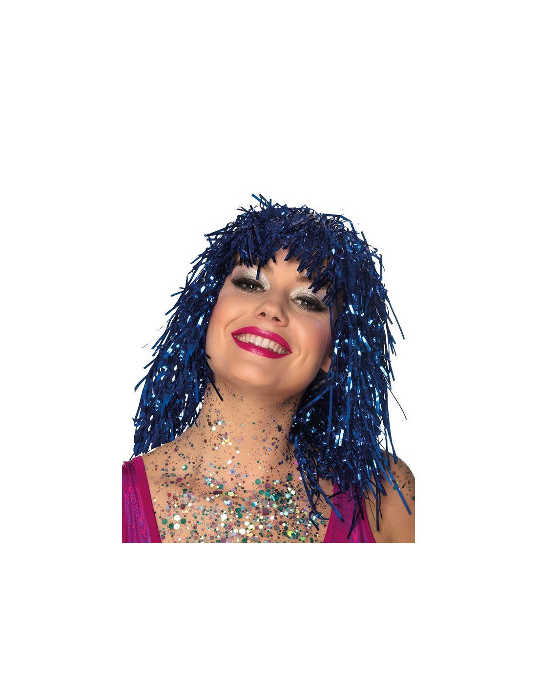 Peluca metalizada en diferentes colores ideales para tu disfraz de fin de año más divertido (disponible en rojo, azul, oro, rojo, fucsia y plata)