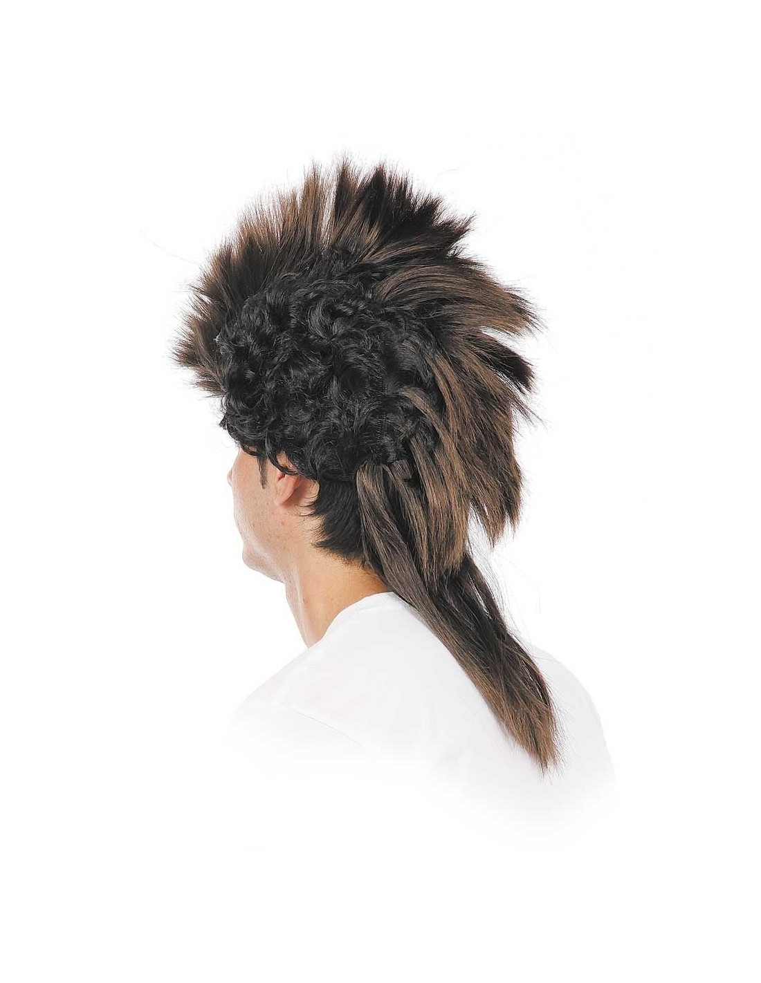 ¿Buscando una peluca para Carnaval? Con esta peluca de indio podrás revivir la época del Far West.. Color negro con mechas castañas, lleva una cresta y una especia de coleta en la parte de atrás.