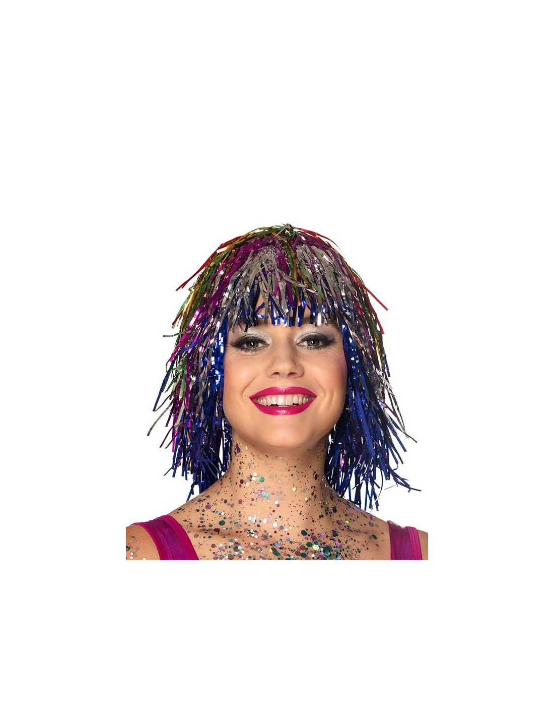 Peluca multicolor metalizada para adulto en cotillones o Photocall.