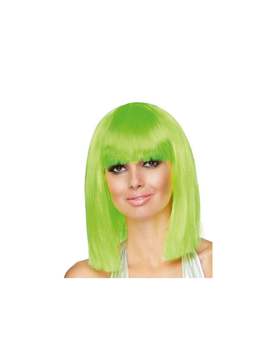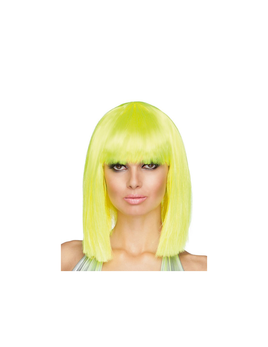 Peluca neón Dance con flequillo disponible en color verde y amarillo.