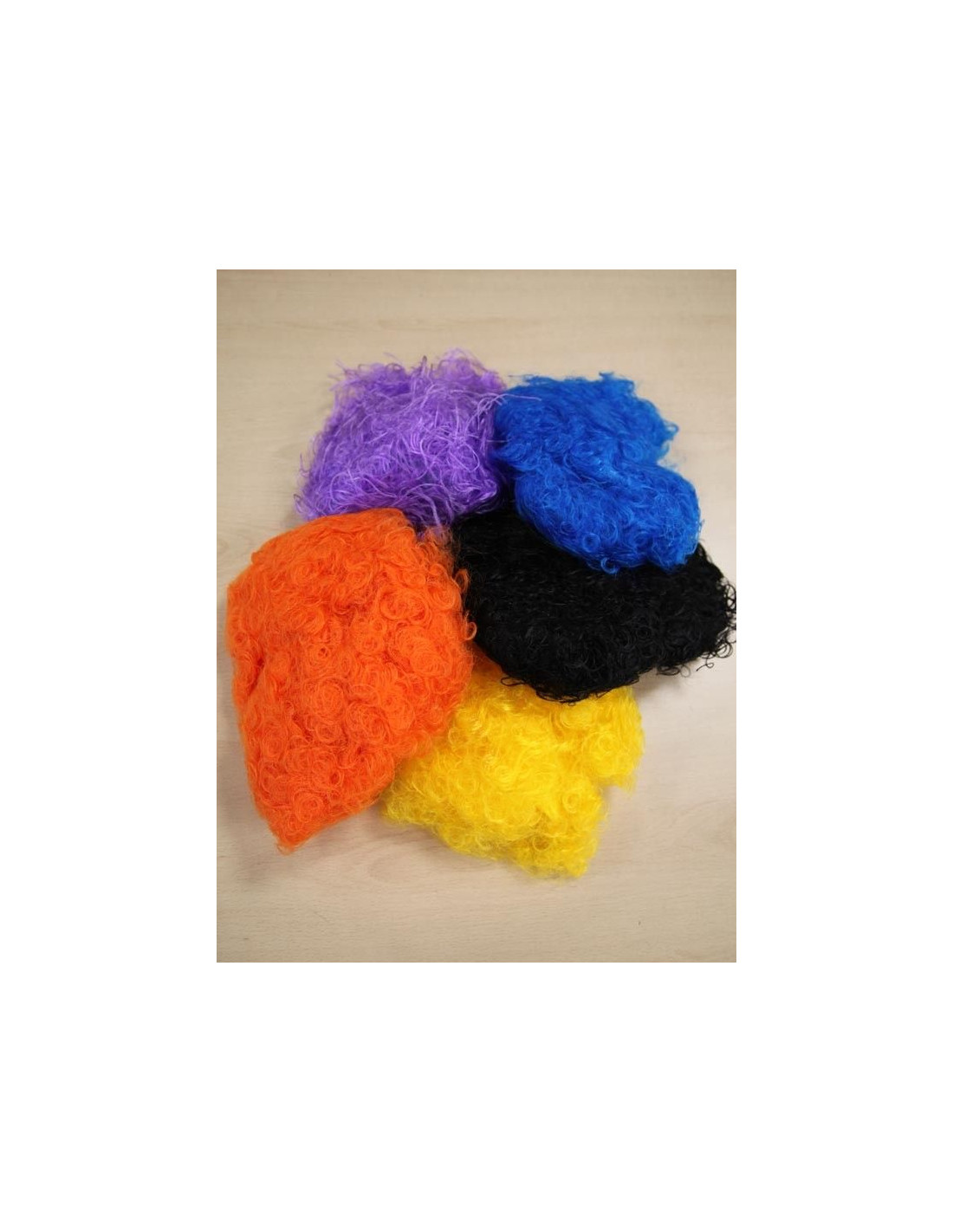 Peluca de rizos para complementar tu disfraz de payaso. Disponible en colores surtidos.