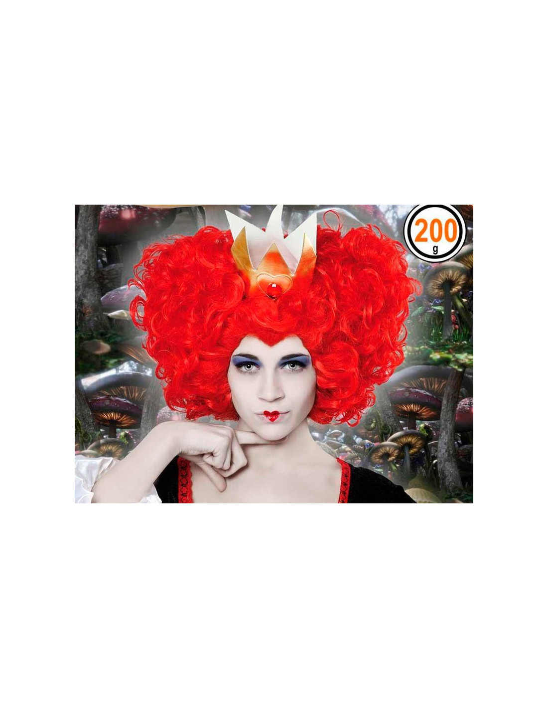 Incluye peluca Reina de Corazones  en color rojo, rizada y con una corona de tela.