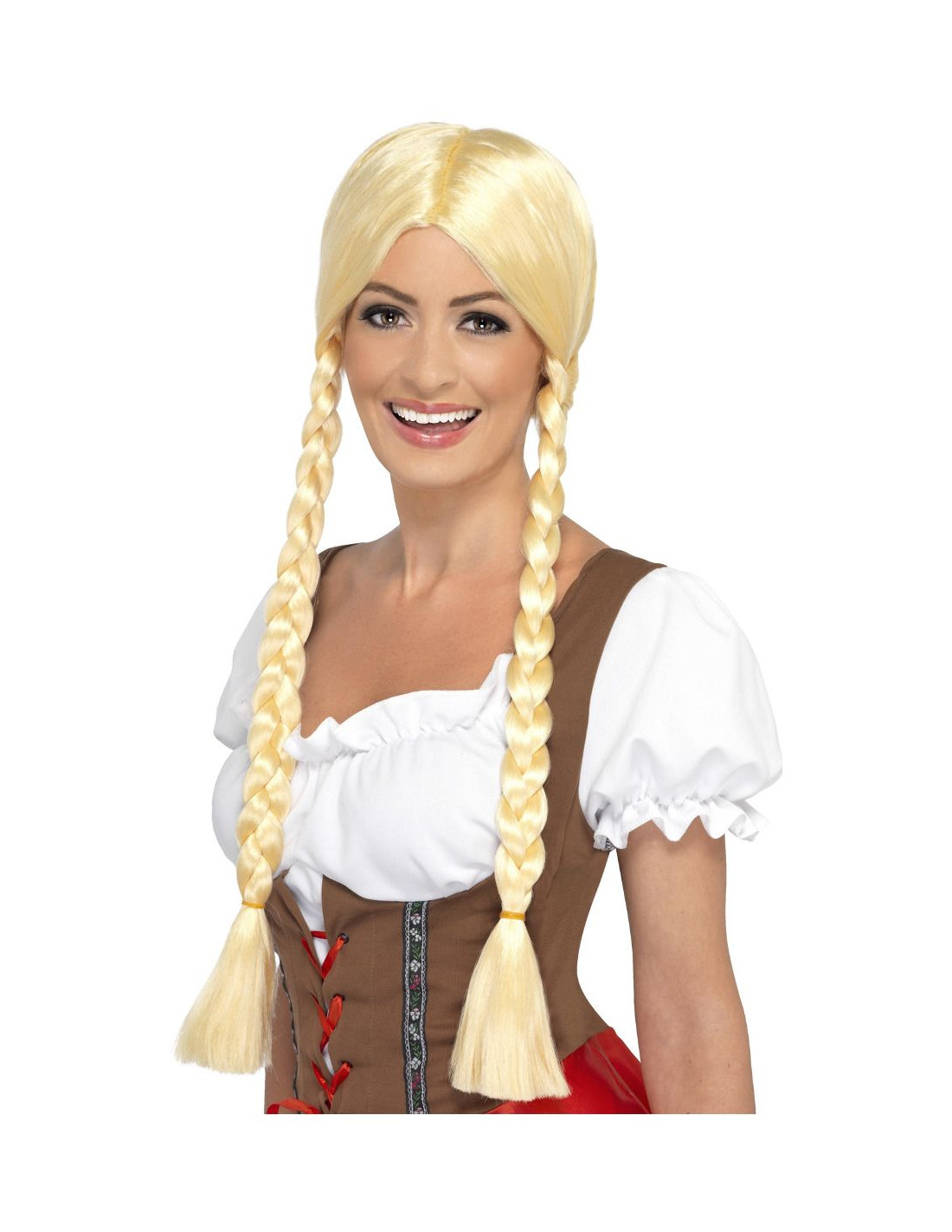 Peluca tirolesa que incluye una peluca rubiacon dos trenzas.