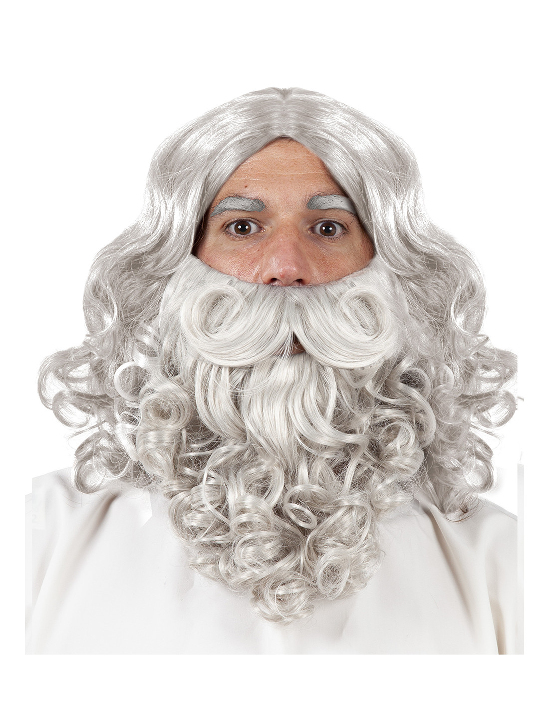 Peluca y barba Rey Mago deluxe para completar tu disfraz de Rey Mago en cabalgatas navideñas y eventos de Navidad.
