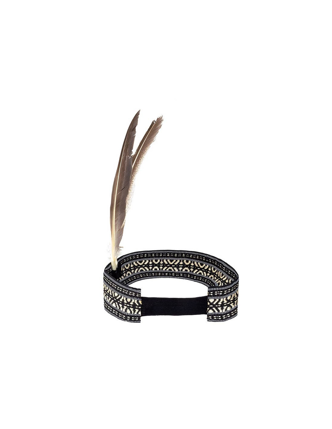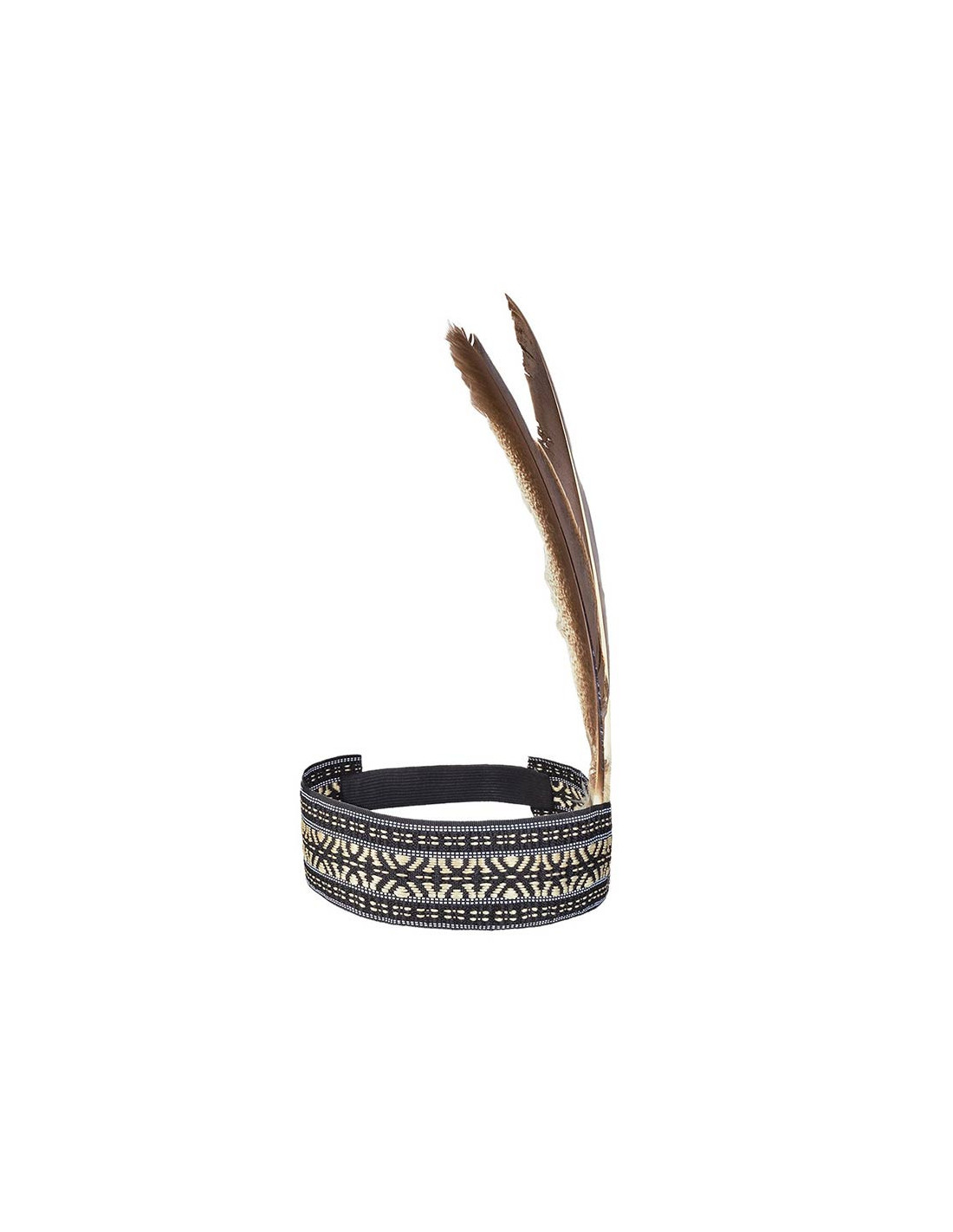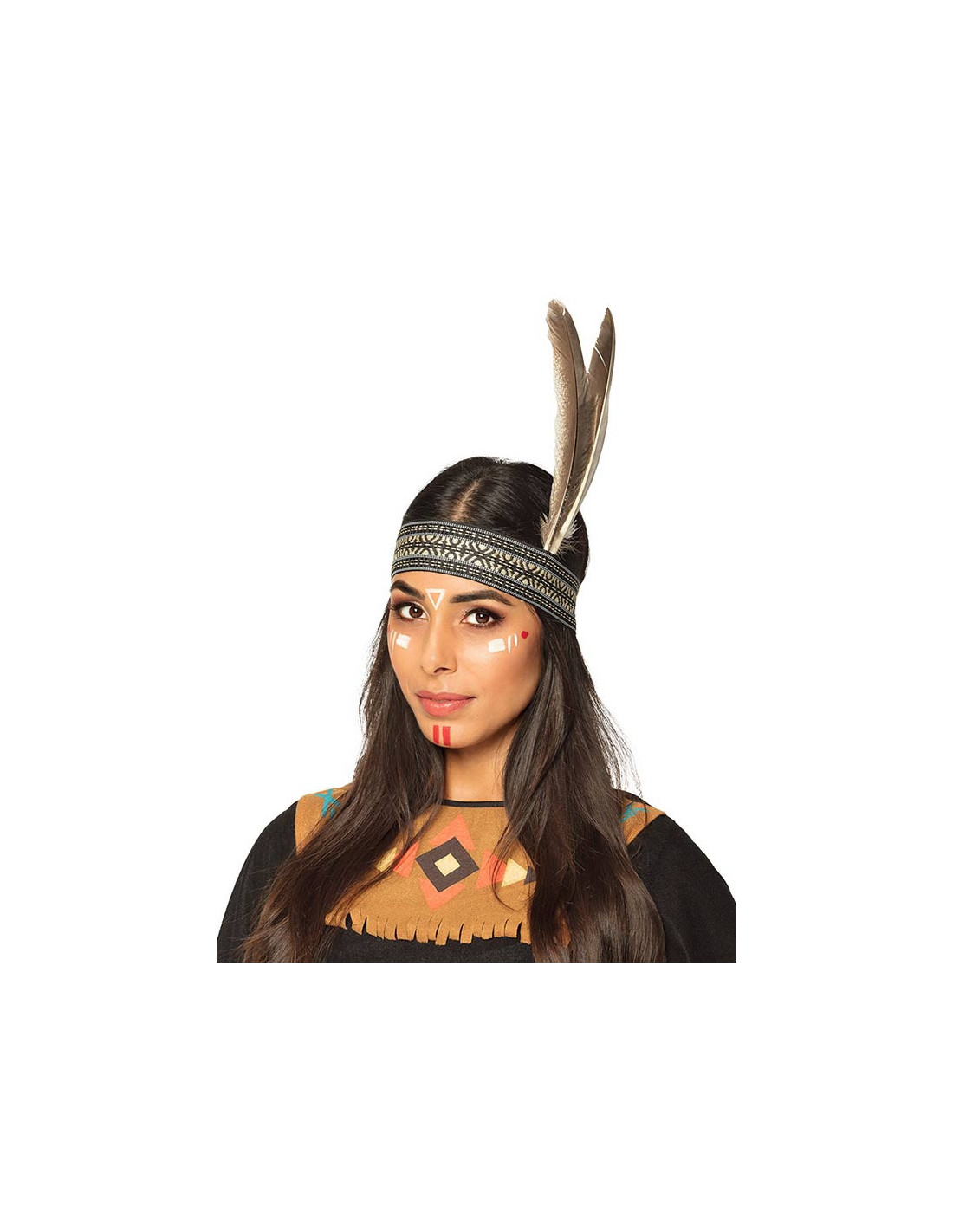 Penacho de india cherokee que incluye una cinta estampada con elástico y dos plumas.