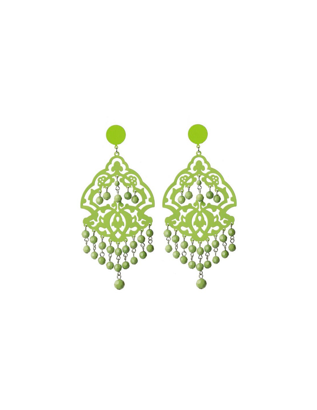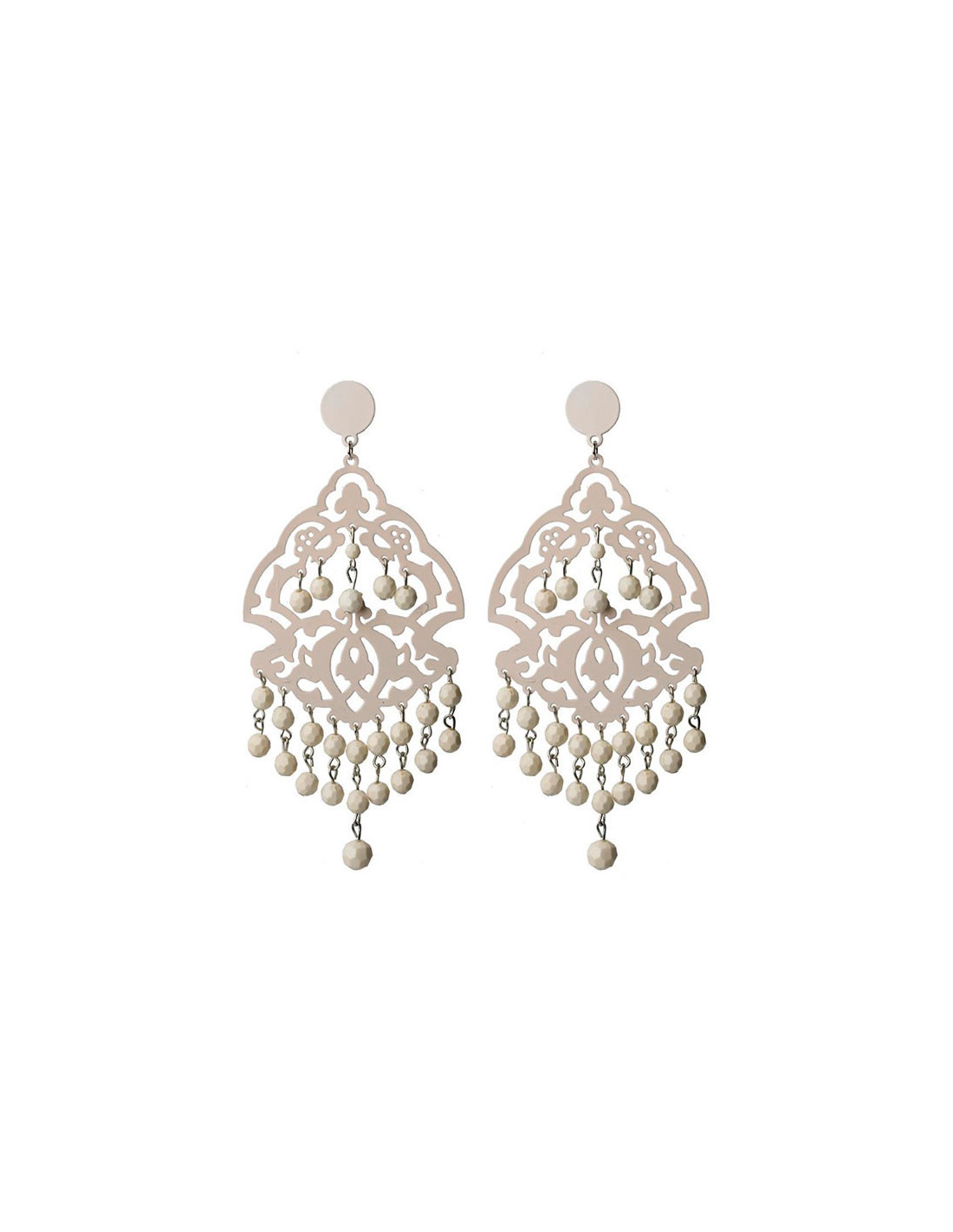 Preciosos pendiente flamenca de metal con bolitas. Tiene un cierre omega y un tamaño aproximado de 12cm.