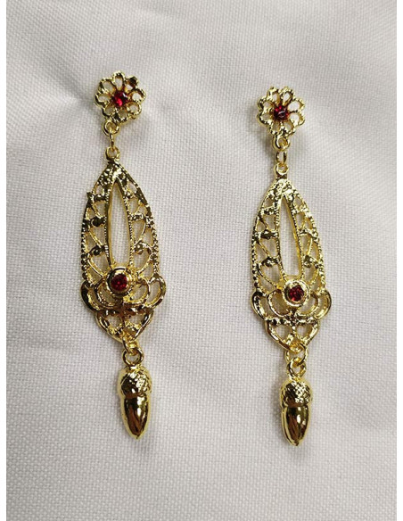 Pendiente regional dorado con bellotas colgantes para lucir con tu traje de baturra.