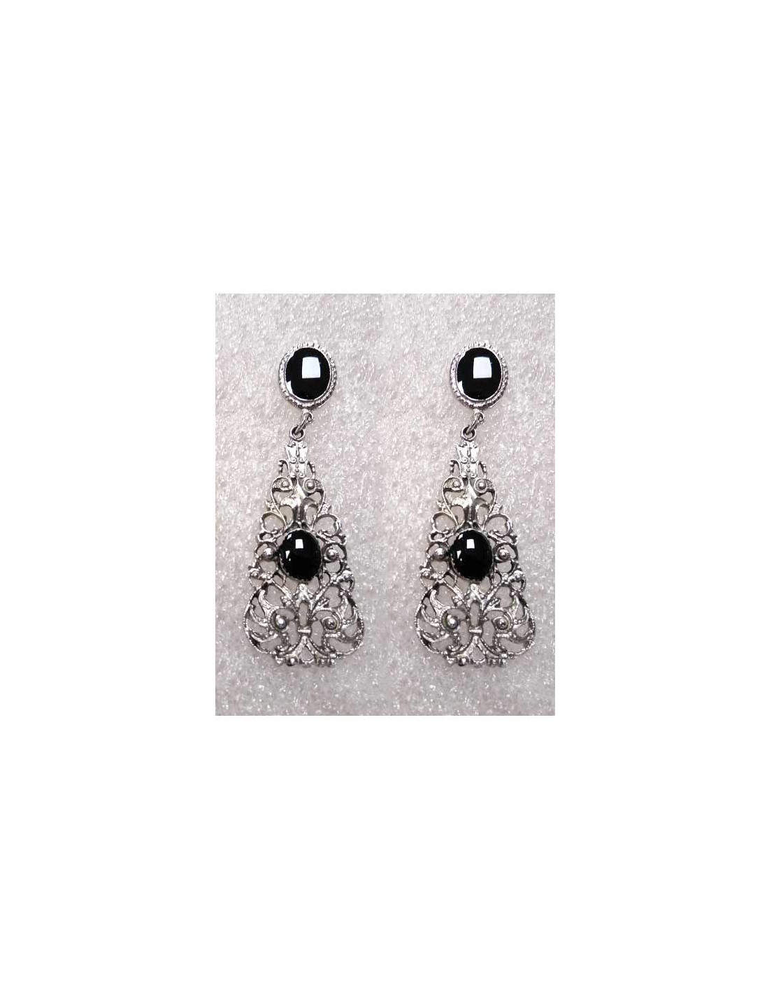 Este pendiente de color plata con esmaltado negro mide 6x2cm.