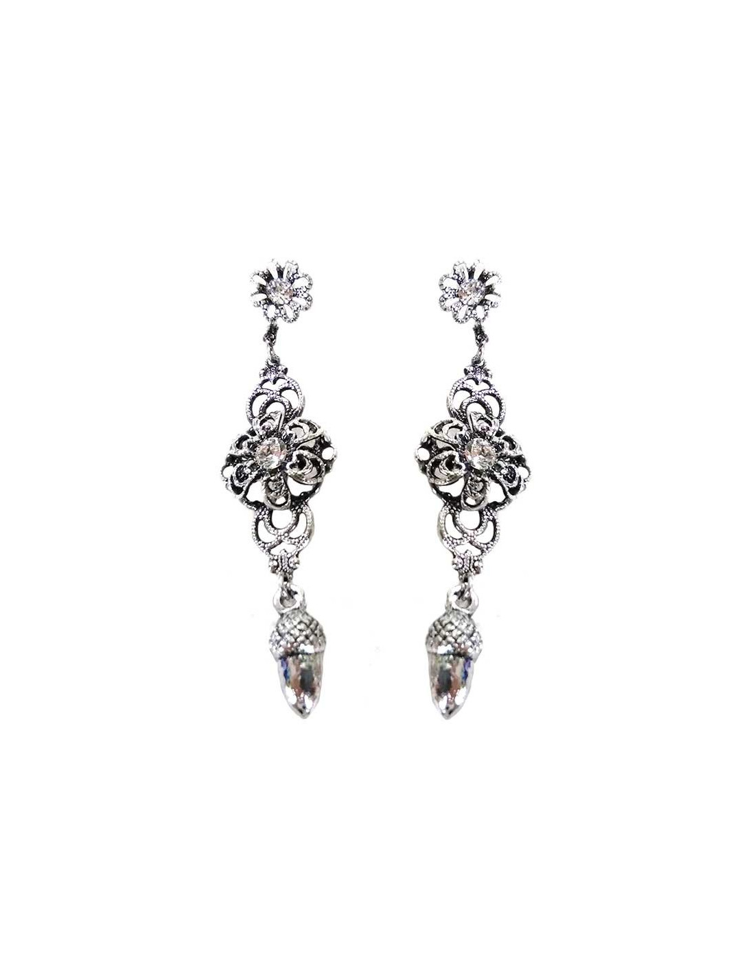 Pendientes para traje regional con piedras blancas y unas medidas de 6x2cm aproximadamente. Tienen cierre catalán.