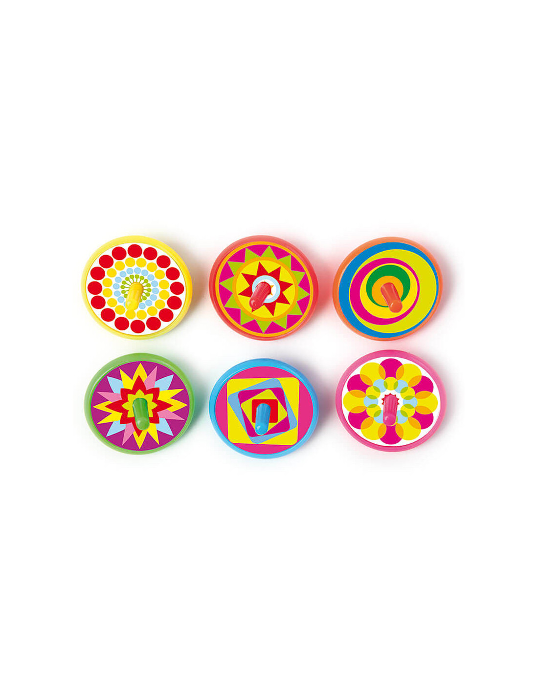 Contiene una peonza pequeña en color y modelo aleatorio.