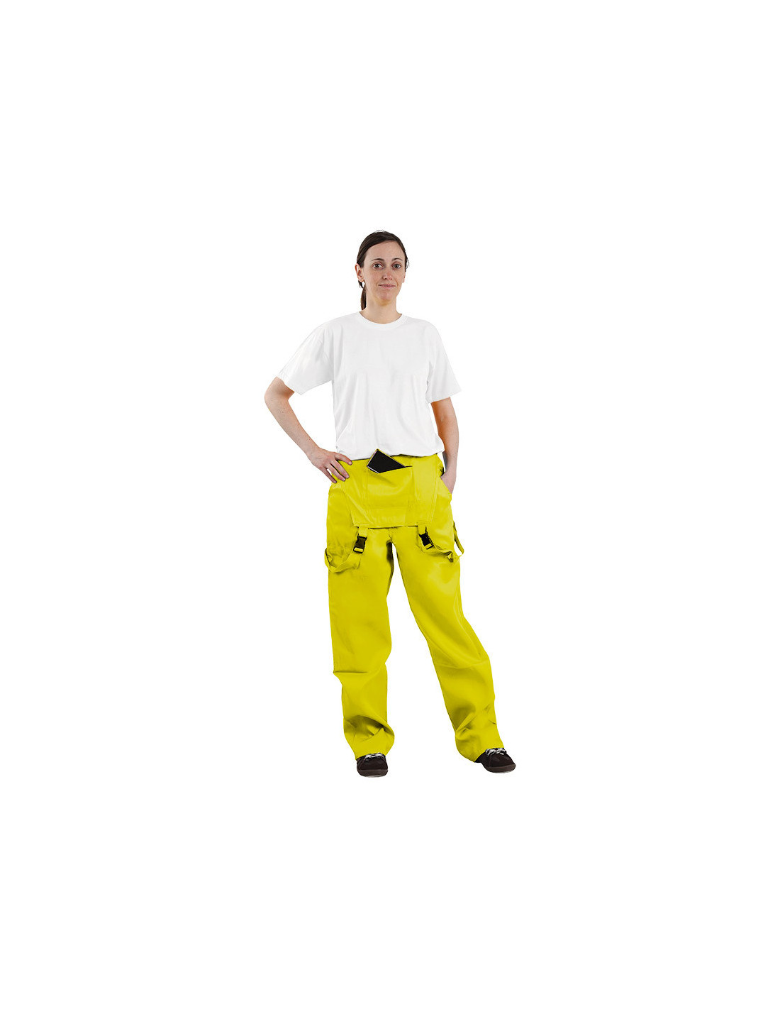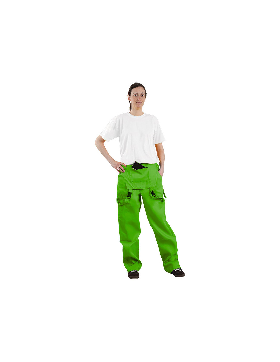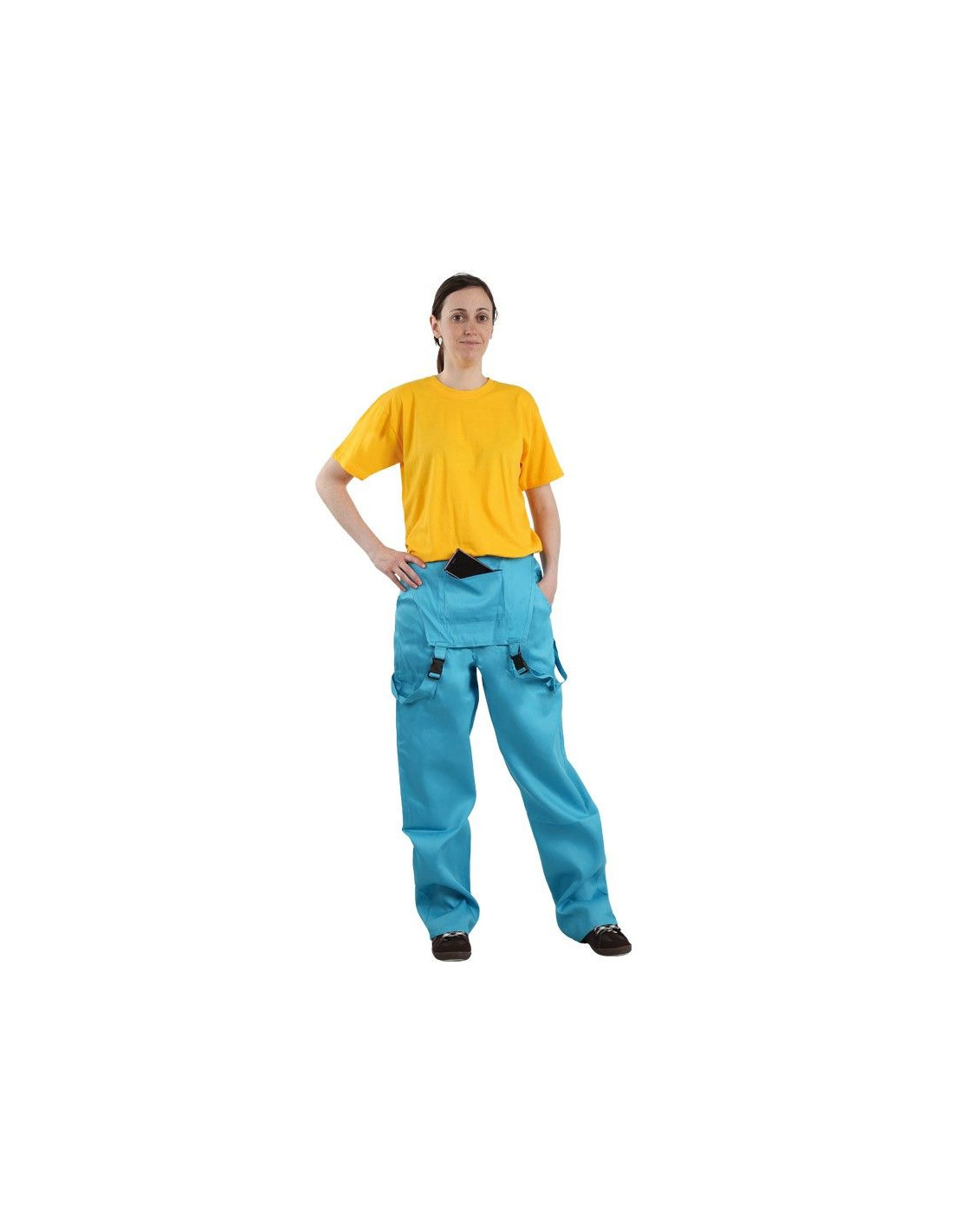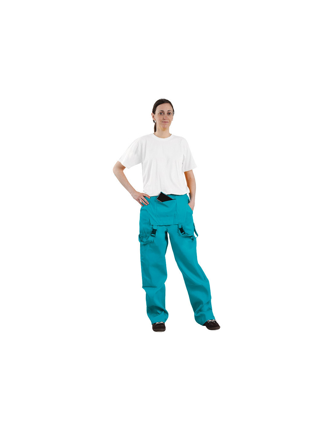 Contiene un peto con doble bolsillo con cremallera en interior y exterior, donde podrás guardar llaves, monedero, móvil... sin miedo a perderlo. Y unos tirantes ajustables para llevar puestos o colgando.