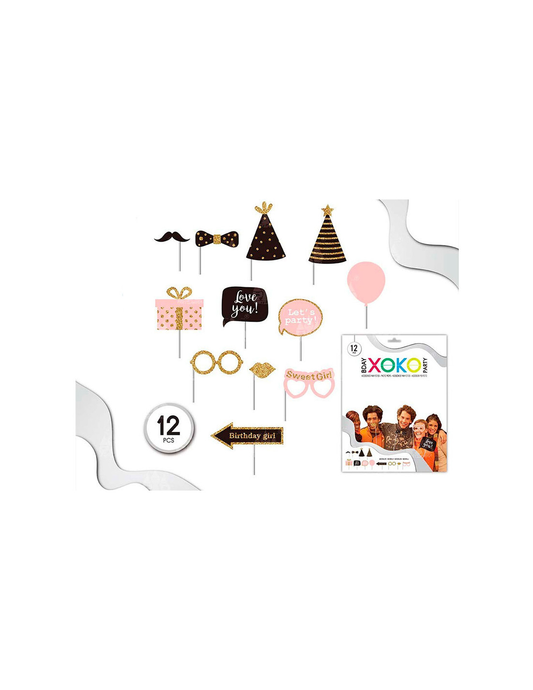 Photocall cumpleaños deluxe que incluye 12 piezas de fotomatón.