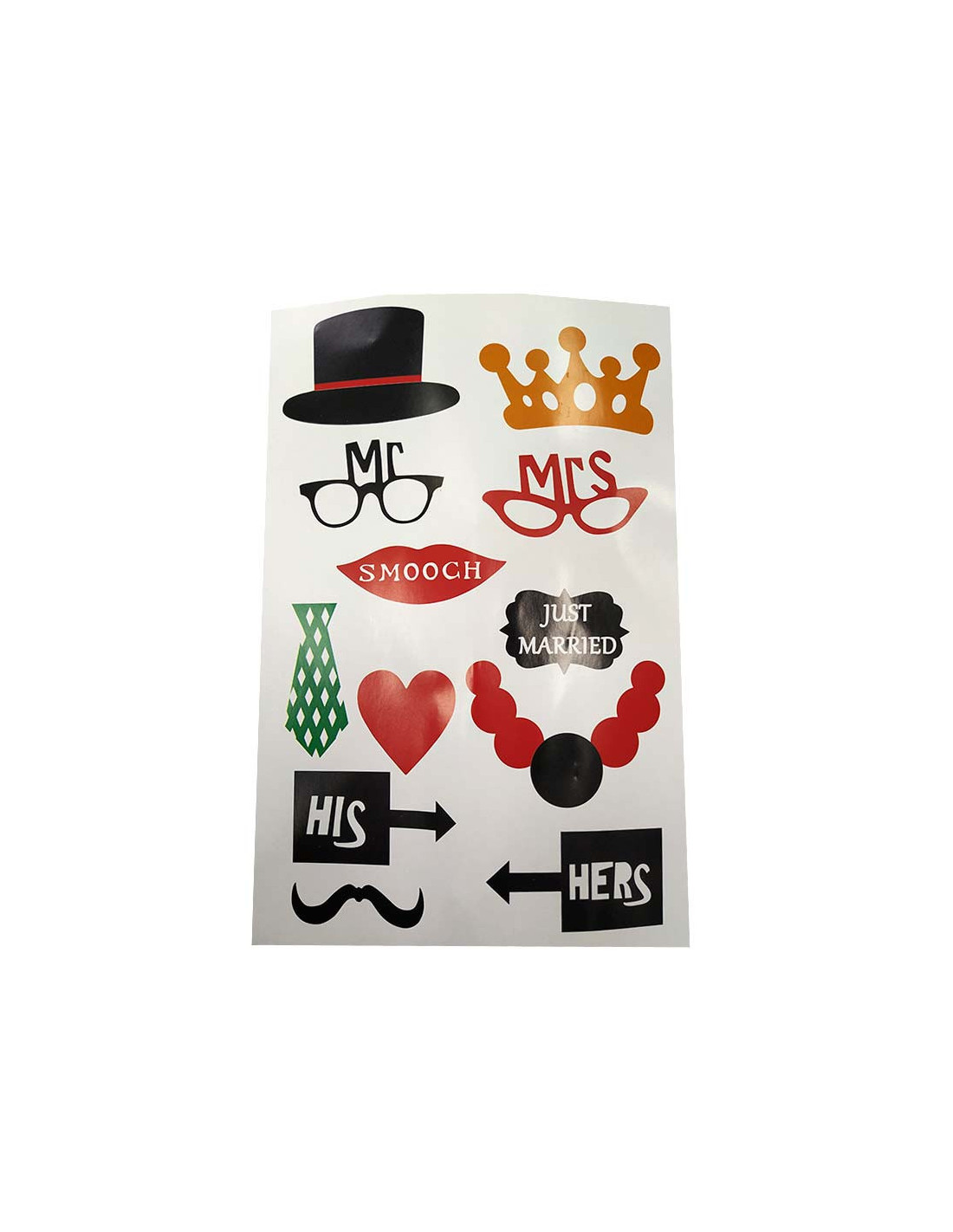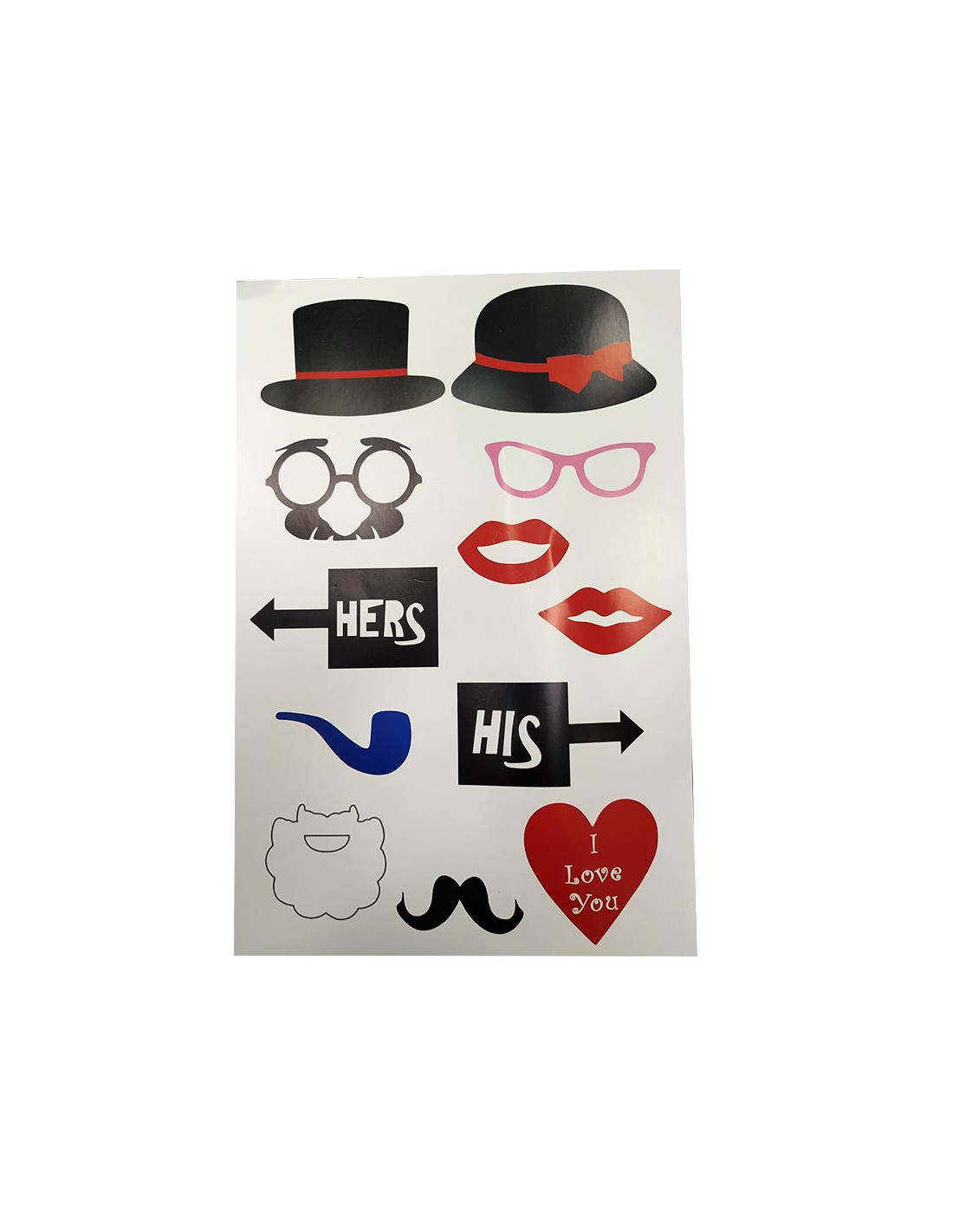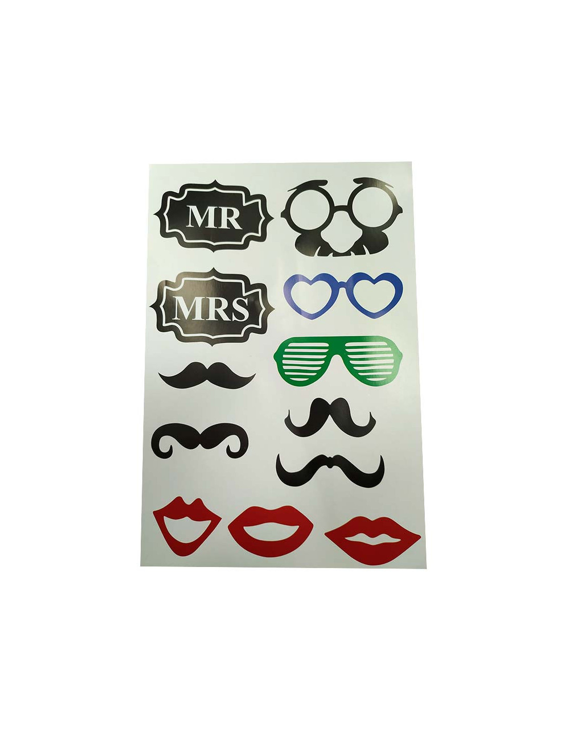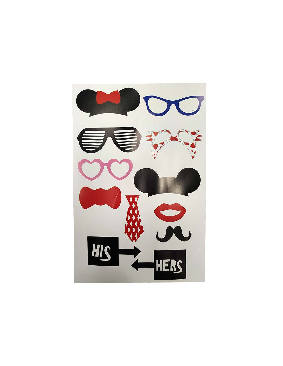 Photocall para fiesta surtido, cada unidad contiene 11 piezas. Modelos surtidos como los que aparecen en la imagen.