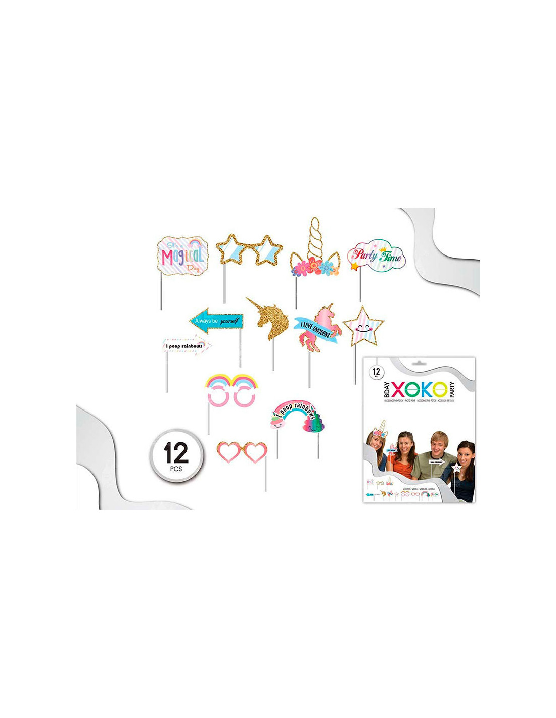 Este photocall contiene 12 piezas con temática de fantasía y unicornios.