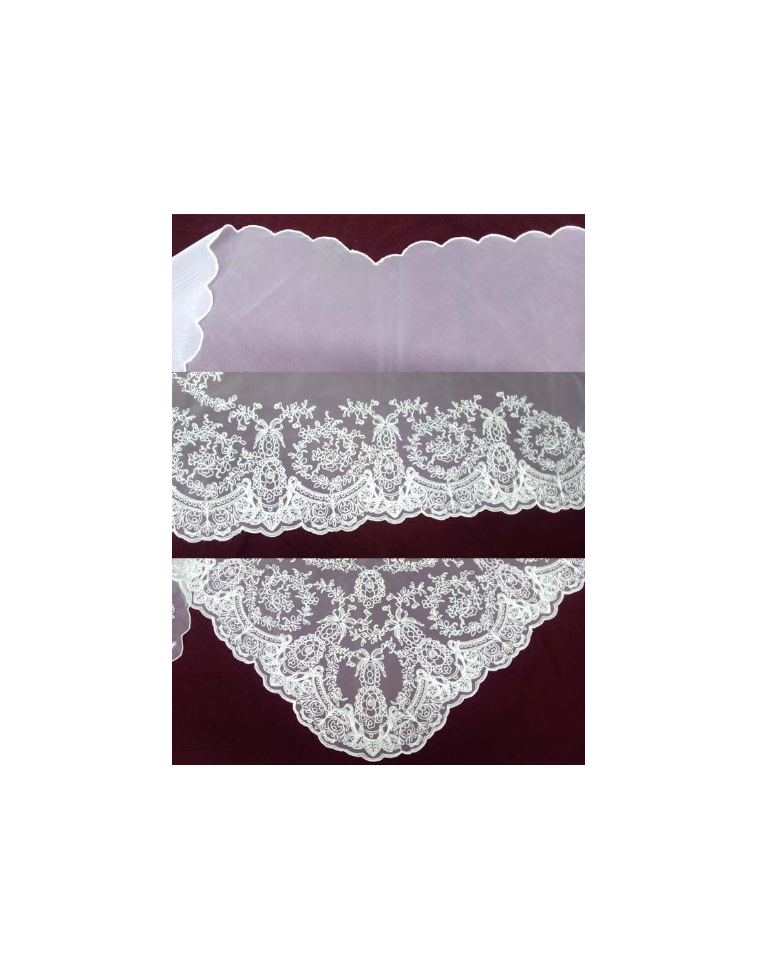 Base de tul bordado con cadeneta de 150 de largo. Elaborados a mano.