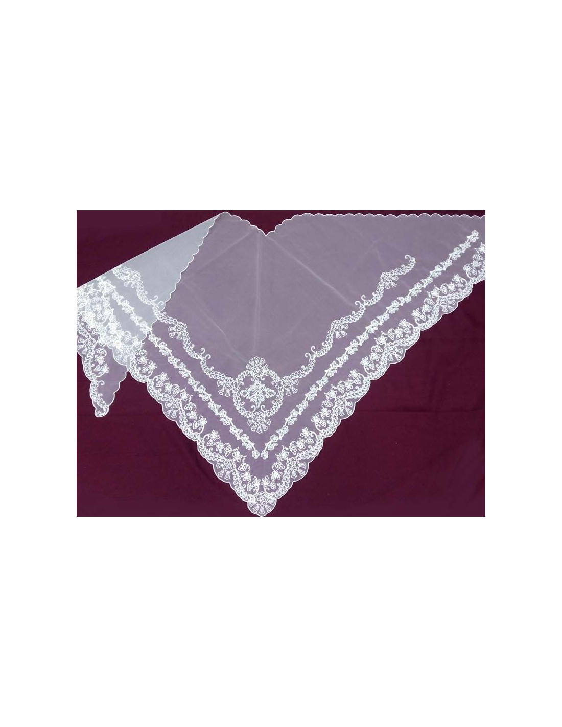 Mantilla de tul blanco bordado de 115cm elaborados a mano.