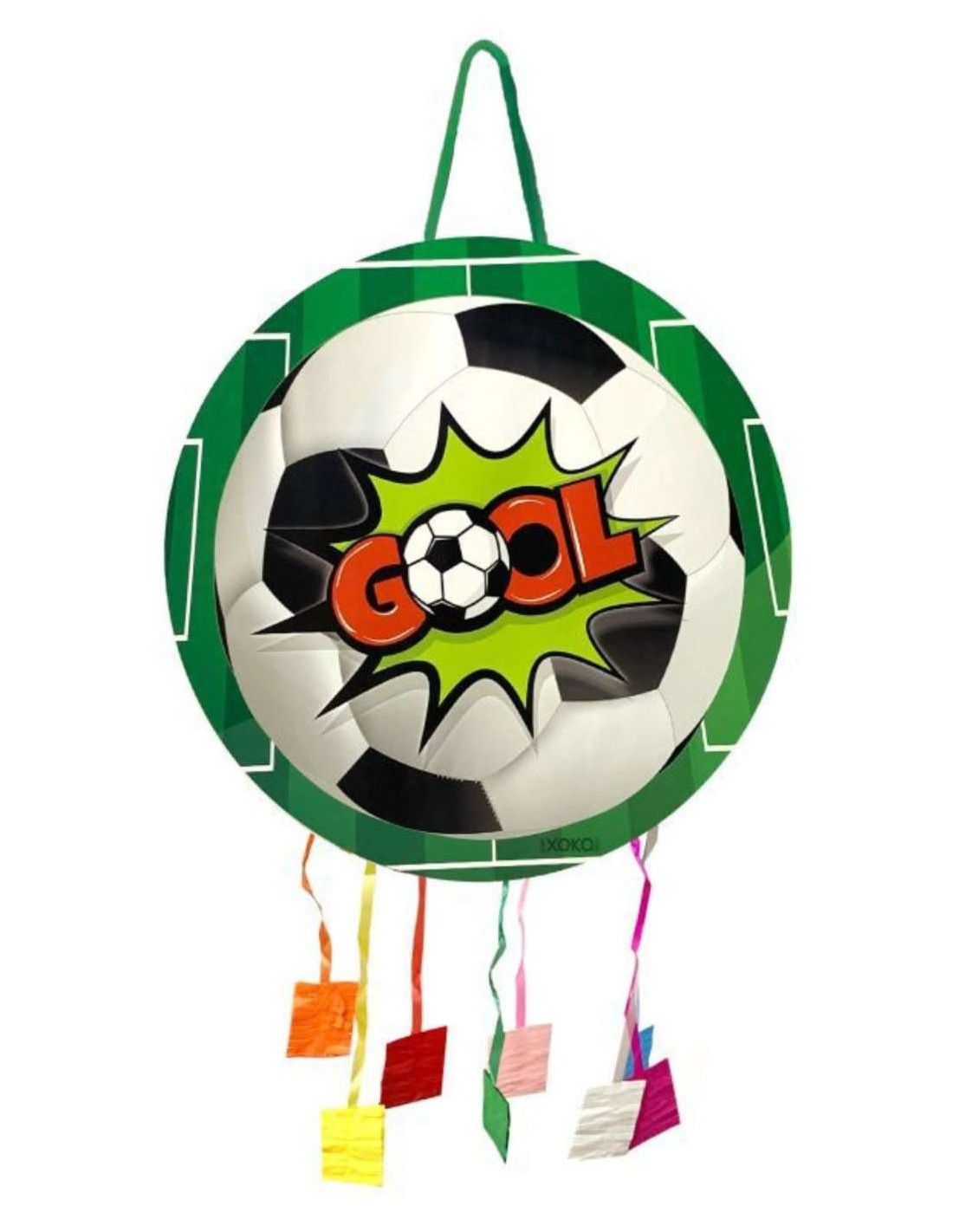Original piñata de balón de futbol para celebrar el cumpleaños de los fanáticos de ese deporte.