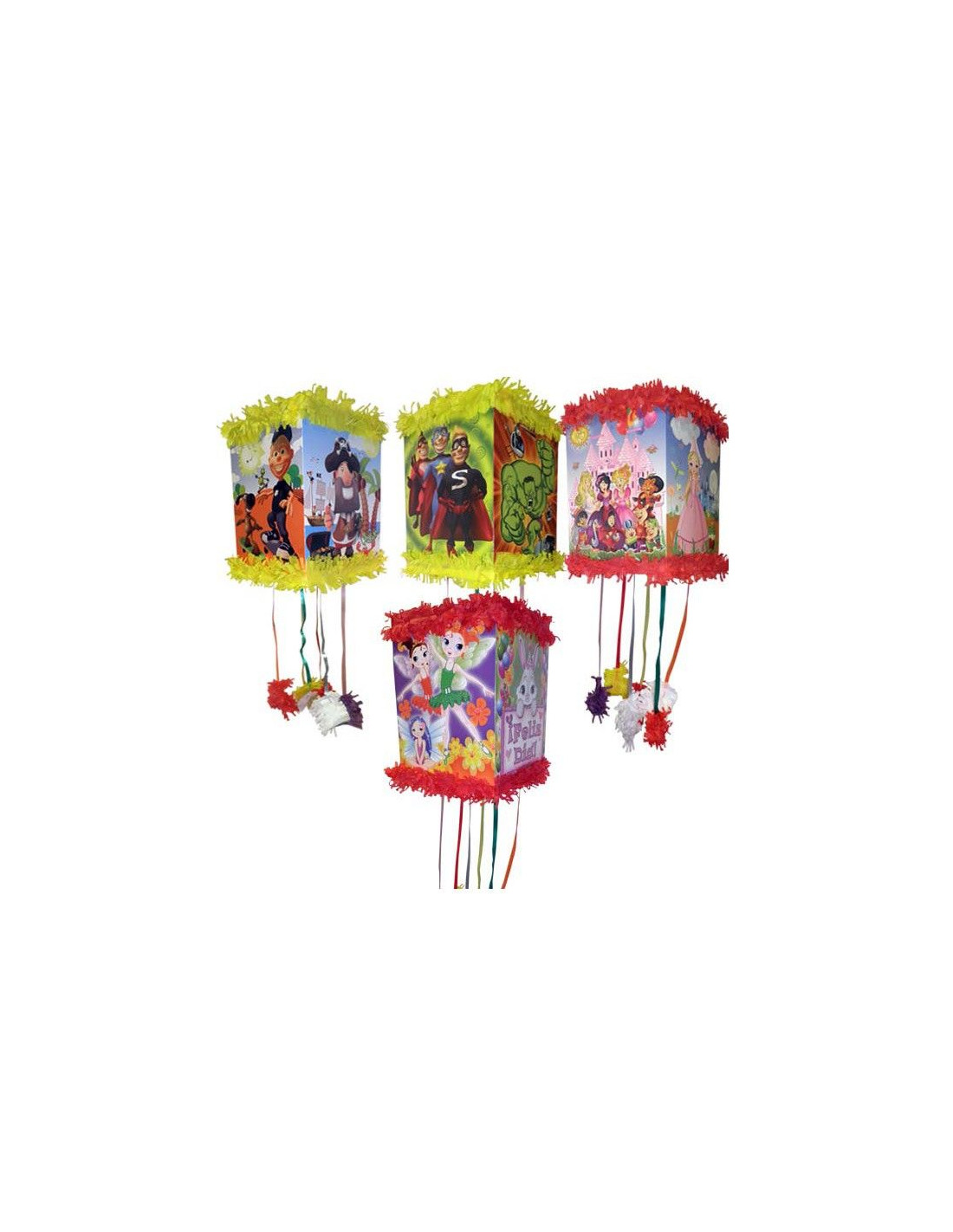 Piñata de cartón y papel de seda, en estampados y colores surtidos. perfecta para cumpleaños y celebraciones infantiles. Medidas 40x30x20cm.
