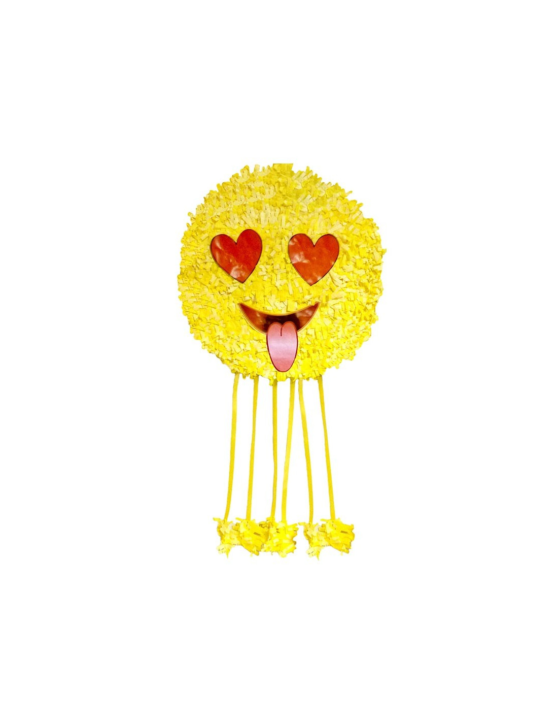 Esta simpática piñata de emoji enamorado es ideal para celebraciones infantiles o de cumpleaños.