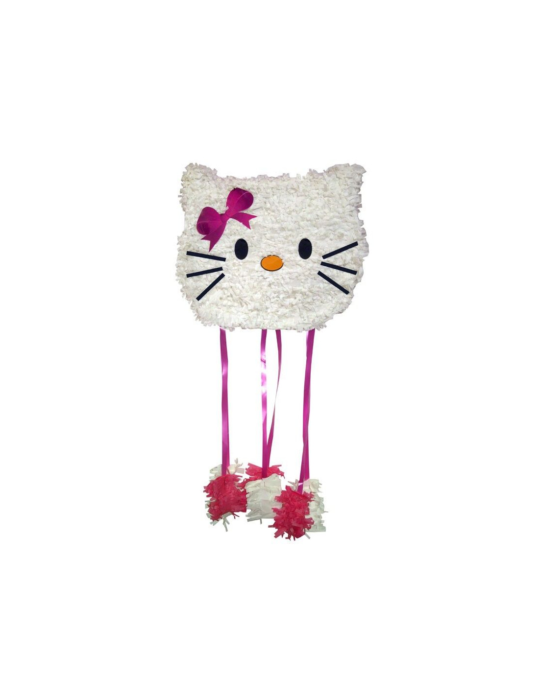 Piñata Hello Kitty para fiestas infantiles o cumpleaños de las peques de la casa. Fabricada en cartón y papel de seda y con unas dimensiones de 40x37cm.