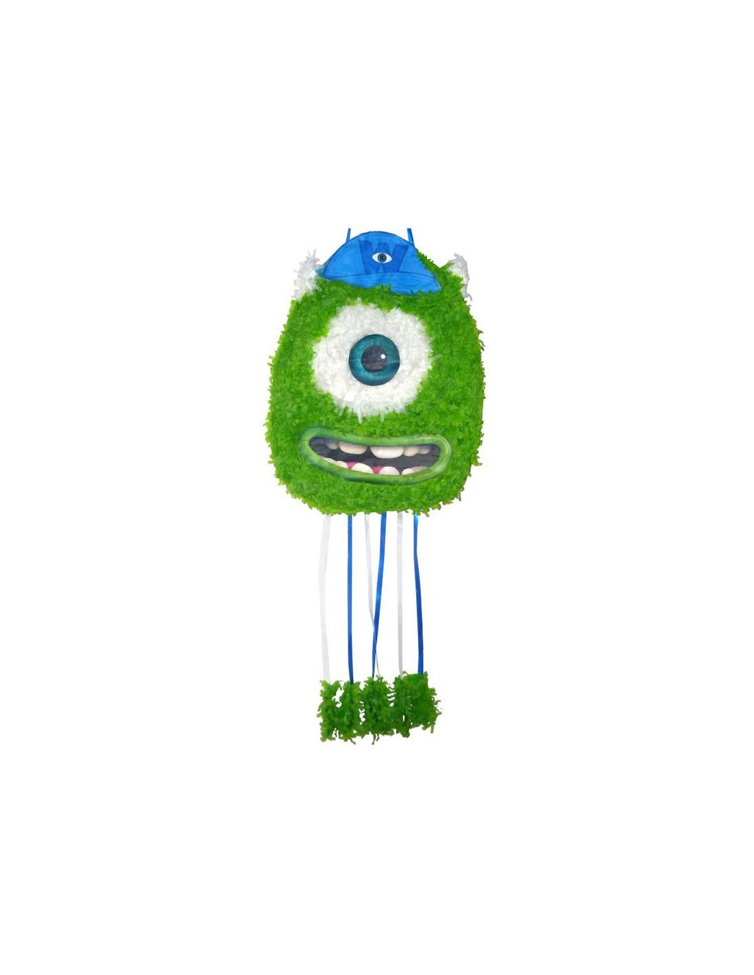 Piñata del personaje de Monstruos SA llamado Mike. Tiene unas medidas de 47x35x25cm y es de cartón y papel de seda.