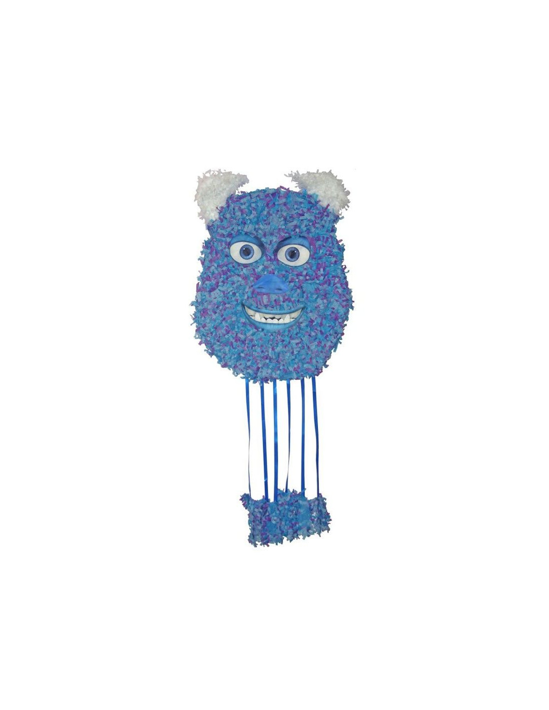 Piñata del personaje de Monstruos SA llamado Sulley para eventos y cumpleaños. Tiene unas medidas de 47x35x25cm, es de cartón y papel de seda.