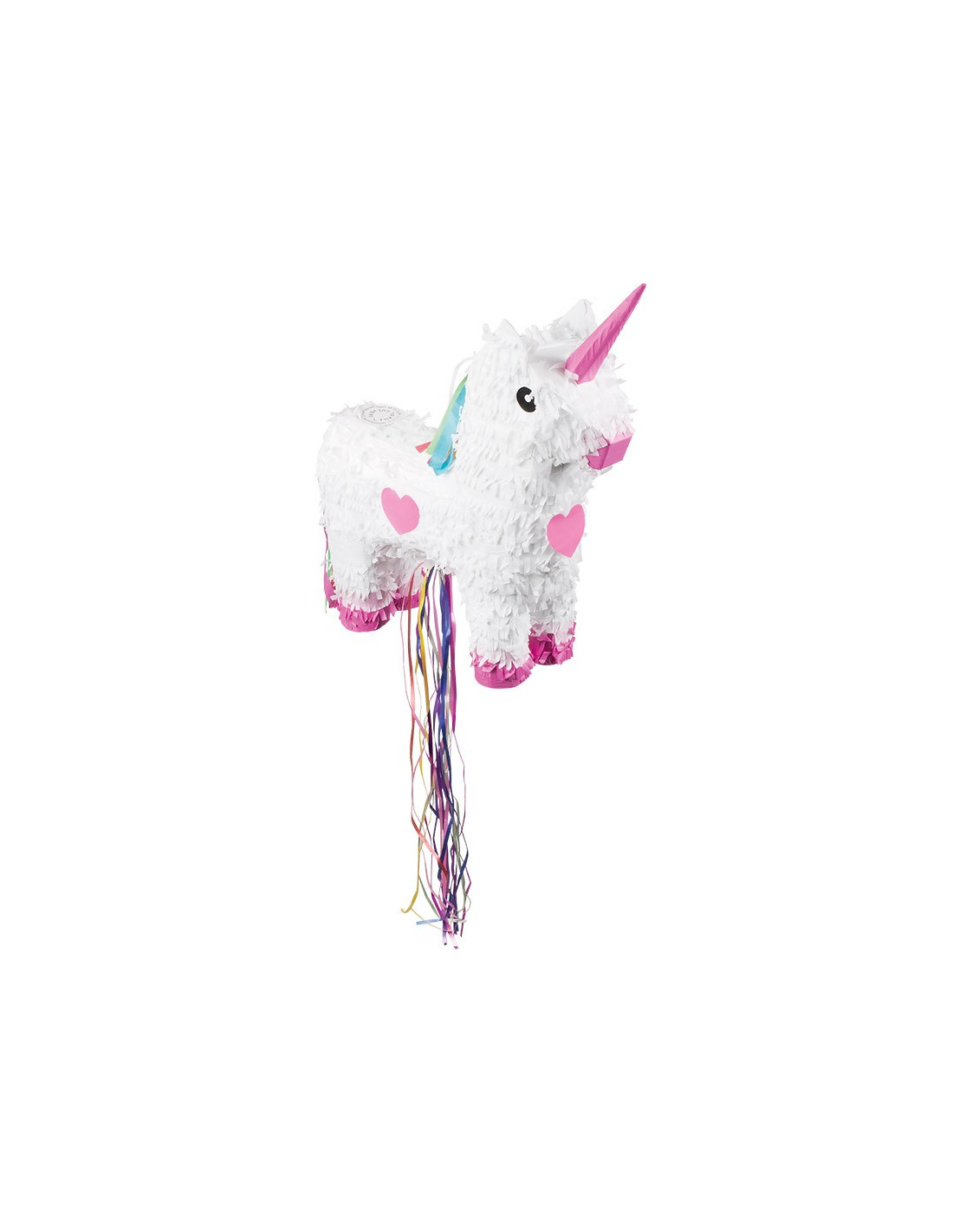 Piñata unicornio blanco que incluye una piñata con forma de unicornio y un tamaño de 47x39cm.