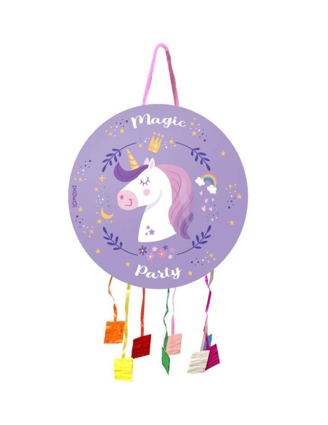 Piñata unicornio lila. Piñata de cartón de 43 cm de diámetro.