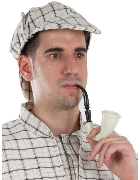 "Elemental mi querido Watson" Sigue la pista del fugitivo y resuelve los casos más difíciles de la época con esta pipa Sherlock Holmes. Inlcuye una elegante y original pipa de Sherlock Holmes, fabricada en plástico de pvc rígido, con la boquilla de color negro y la parte donde se echa el tabaco de color blanco. No utilizable para fumar.