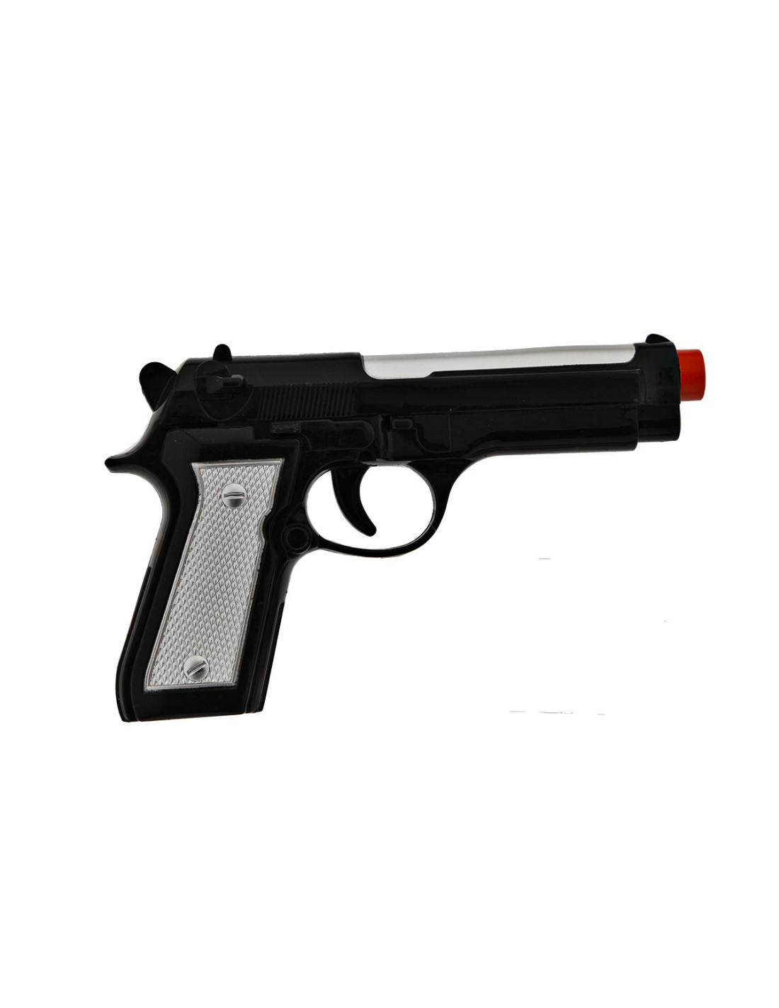 Pistola de plástico para completar tu disfraz de policía, agente secreto o gángster en Carnaval.
