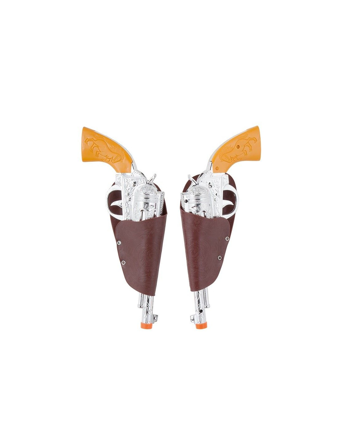 Conviértete en el más rápido del Far West con esa pistola y cartuchera del Oeste. Fabricadas en plástico. Incluye un par de fundas de vaquero y pistolas del lejano Oeste, de medidas aproximadas de 29x13cm.