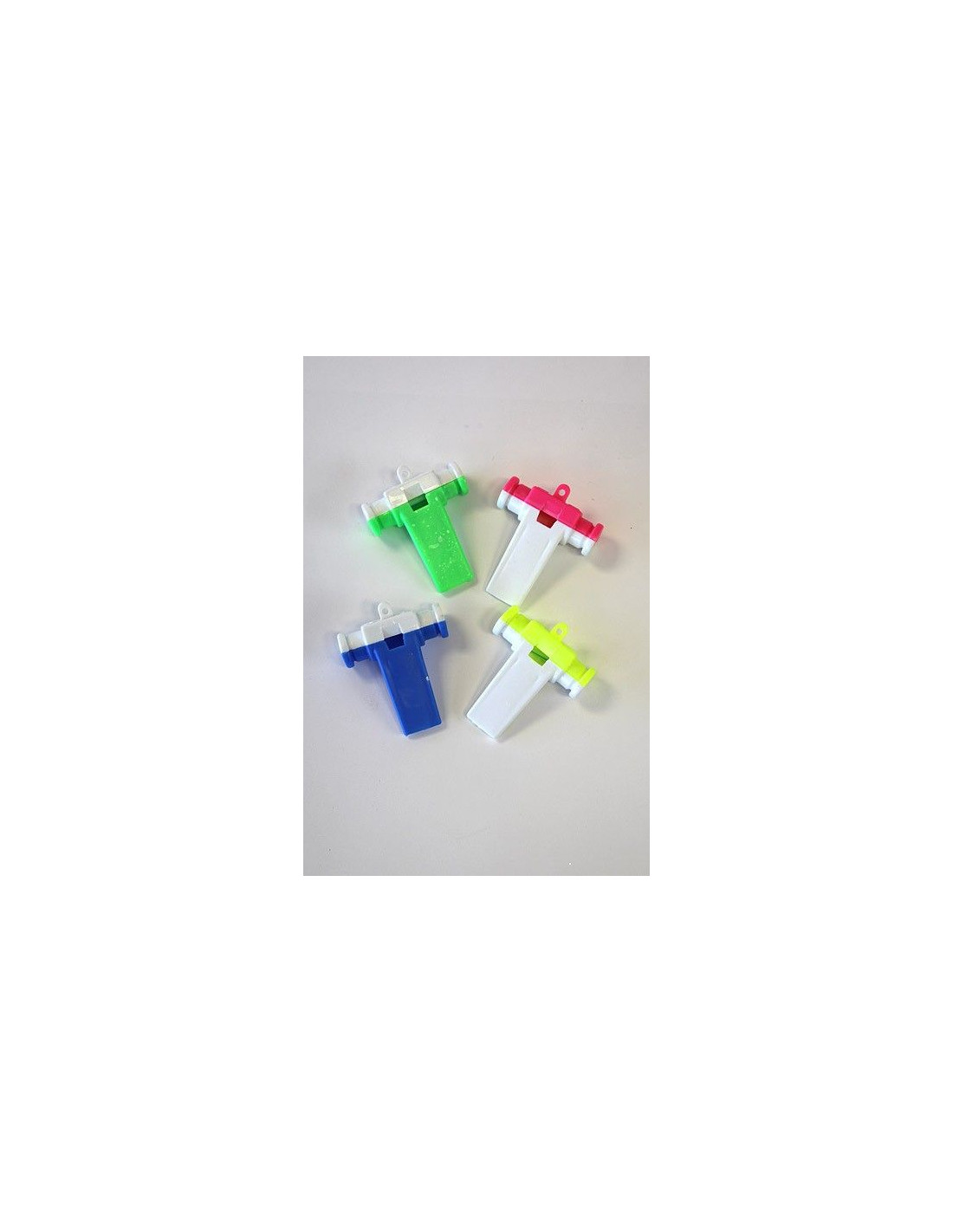 Silbatos en diversos colores para alegrar cualquier fiesta y evento. Sus medidas son de 6x5cm.
